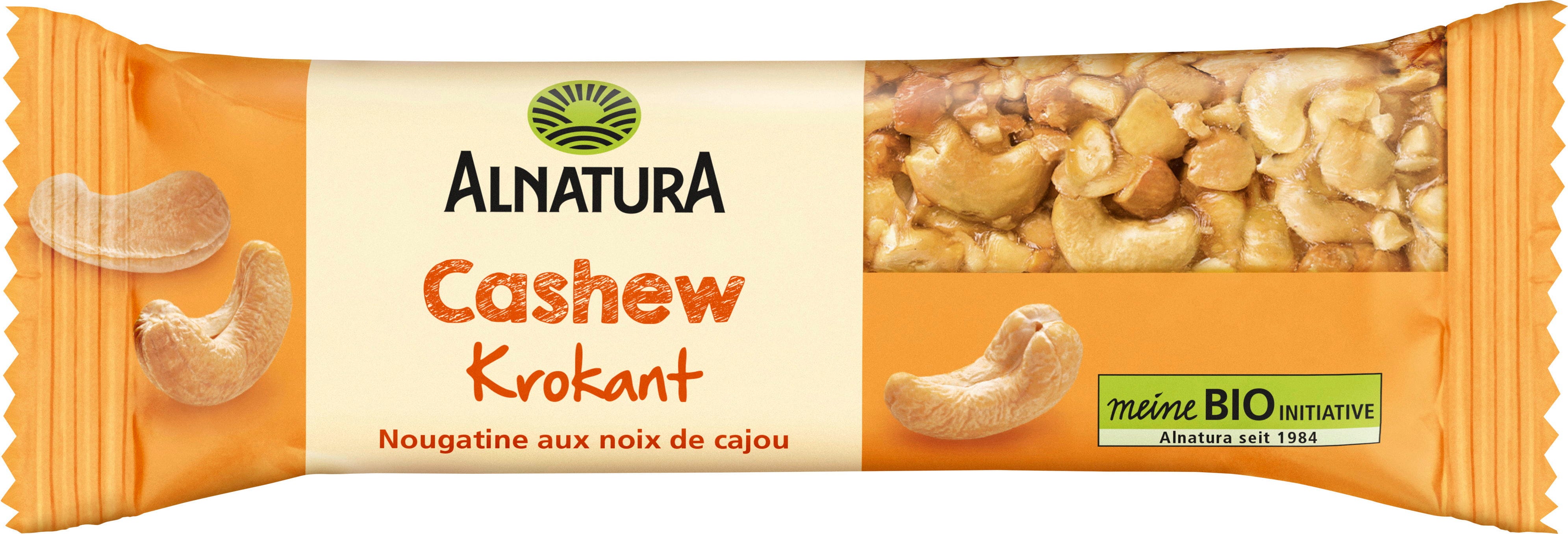 La Barretta Bio al Croccante di Anacardi di Alnatura conquista con grandi pezzi di anacardi e una delicata dolcezza data dal miele. Ideale come snack o da portare con sé.