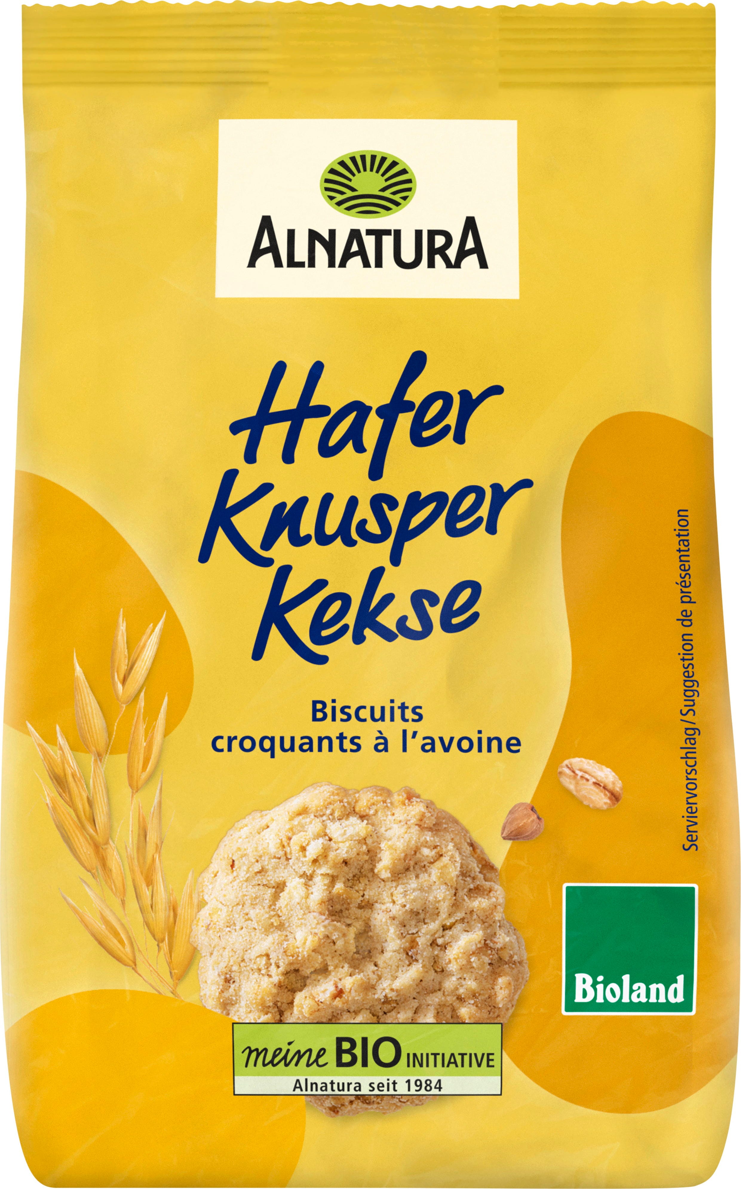 Lo snack croccante ideale per ogni momento: i biscotti croccanti all'avena Bioland di Alnatura sono a base di avena e farro, arricchiti con grano saraceno germogliato. Dal gusto croccante e delicatamente nocciolato, sono perfetti da soli o con caffè o tè. Ricetta vegana con ingredienti Bioland.