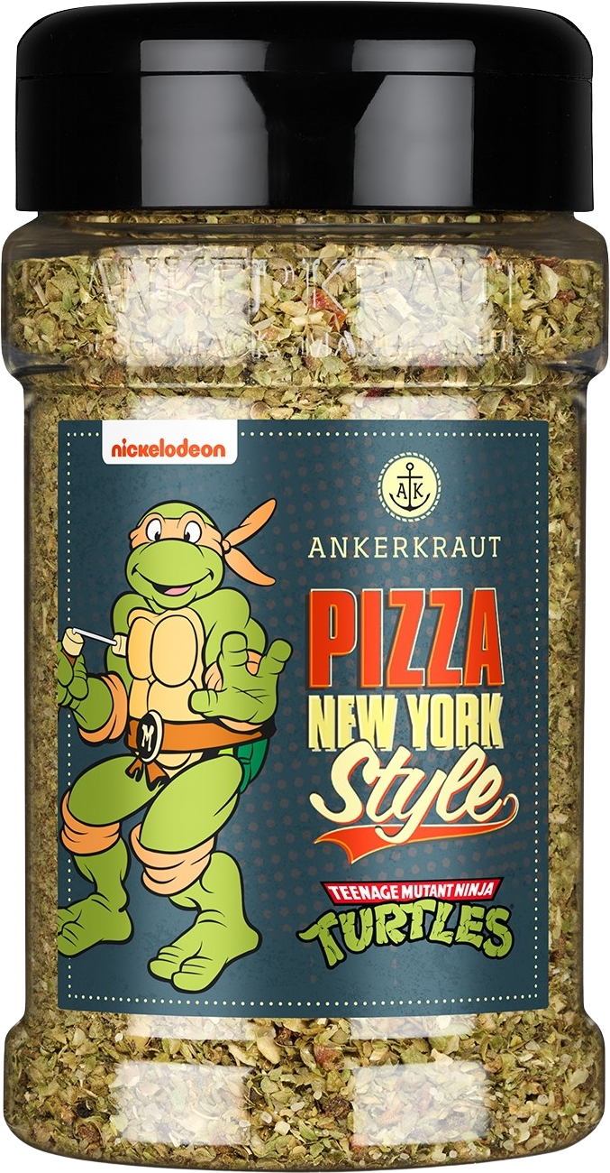 Tutti sanno che il cibo preferito delle Tartarughe Ninja è la pizza! Con il Mix di spezie per Pizza New York Style puoi trasformare la tua pizza appena sfornata in un vero classico newyorkese. La composizione di origano, sale marino, aglio e paprika ha un sapore unico. Il prodotto è completamente senza esaltatori di sapidità, zuccheri aggiunti o additivi. Scegli il tuo personaggio preferito tra Donatello, Raffaello, Michelangelo e Leonardo e dona alla tua pizza un sapore fantastico!