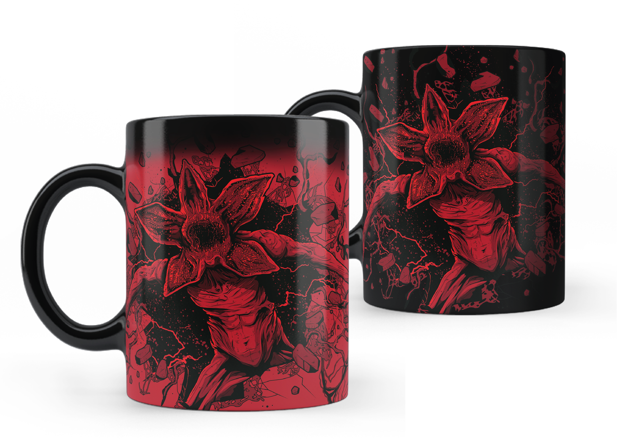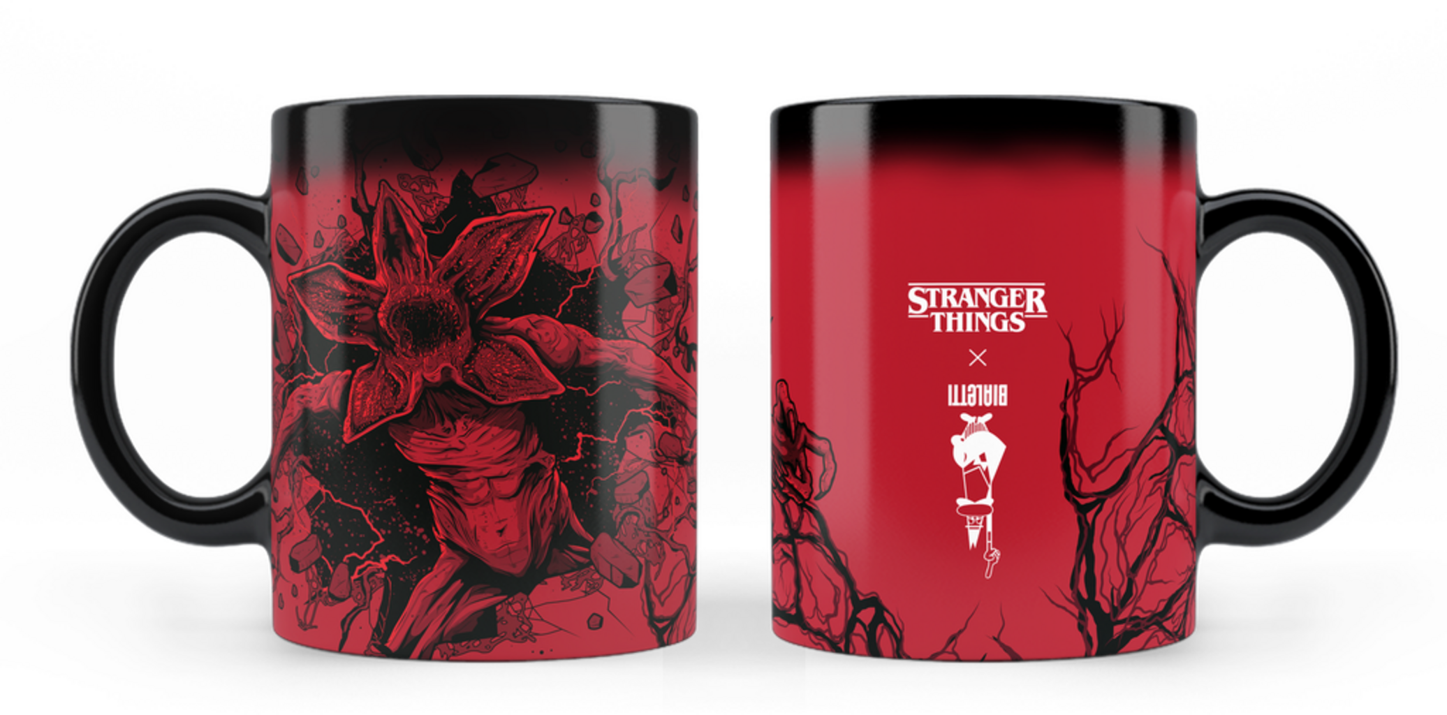 L'esclusiva grafica con il Demogorgone di "Stranger Things" rende questa mug in ceramica di alta qualità il pezzo forte di ogni pausa caffè. E la cosa ancora più bella è che, quando riempita con un liquido caldo, la mug diventa magicamente rossa rivelando dettagli ispirati al Sottosopra.
