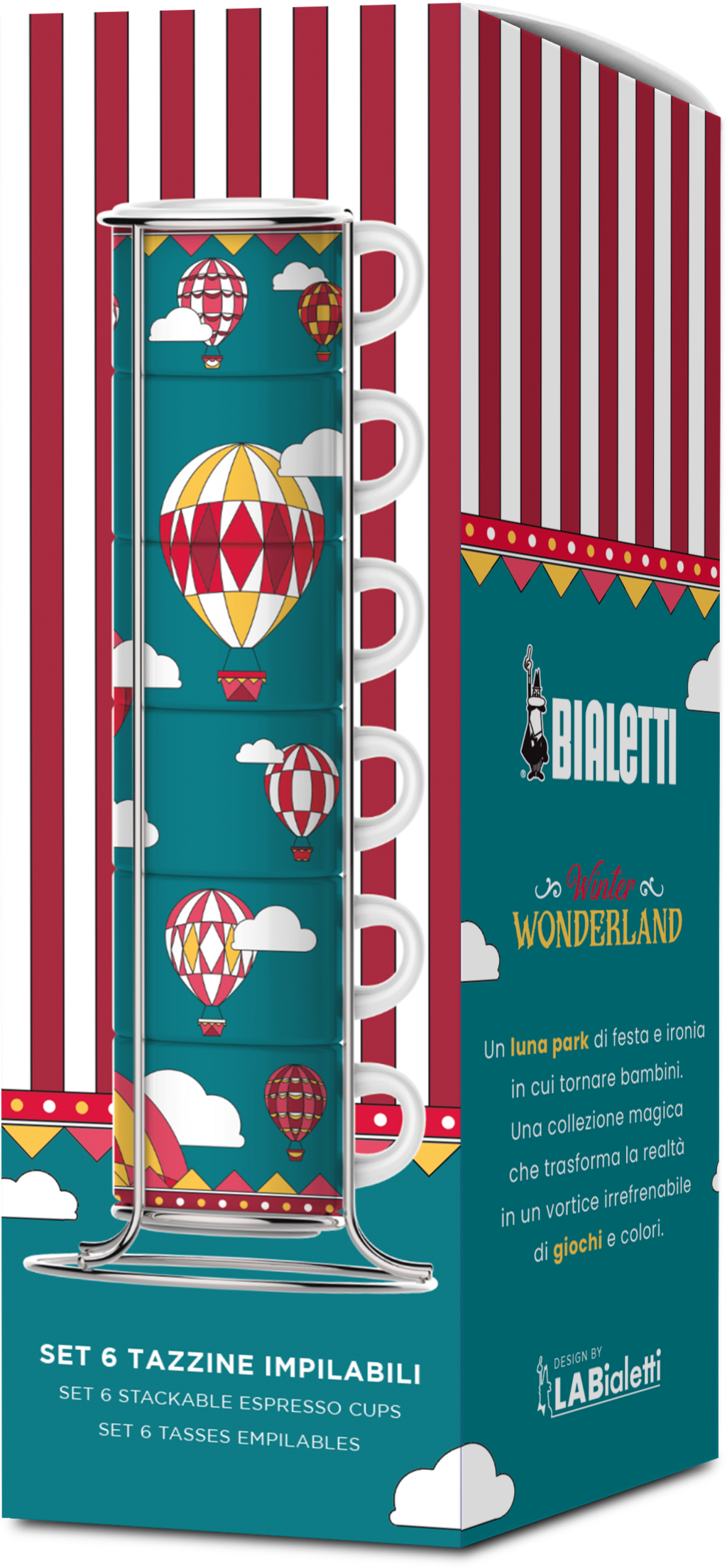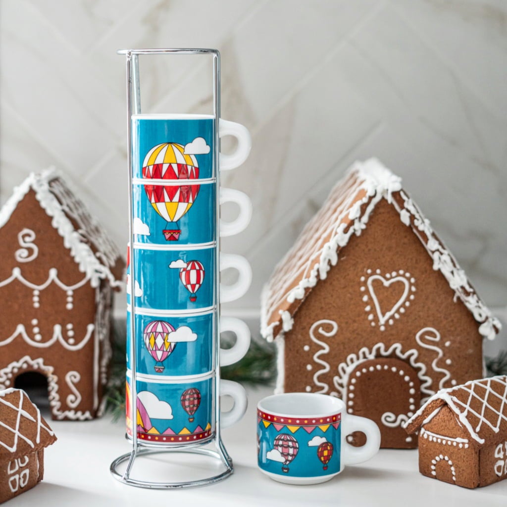 Bialetti Wonderland - Set di 6 Tazzine Impilabili - Mongolfiere