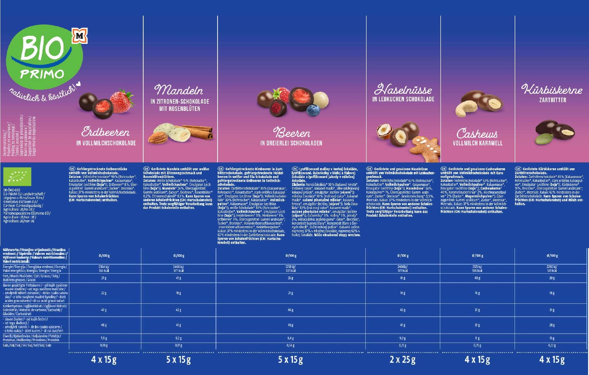 Rendi speciale l’attesa del Natale con il Calendario dell’Avvento Bio Primo! Dietro ciascuna delle 24 finestrelle si nascondono golose sorprese: frutta liofilizzata e croccanti frutta secca, il tutto avvolto da finissimo cioccolato, naturalmente in qualità biologica. Un piacere autentico, confezionato in modo sostenibile e perfetto per chi ama concedersi momenti di dolcezza consapevole.
