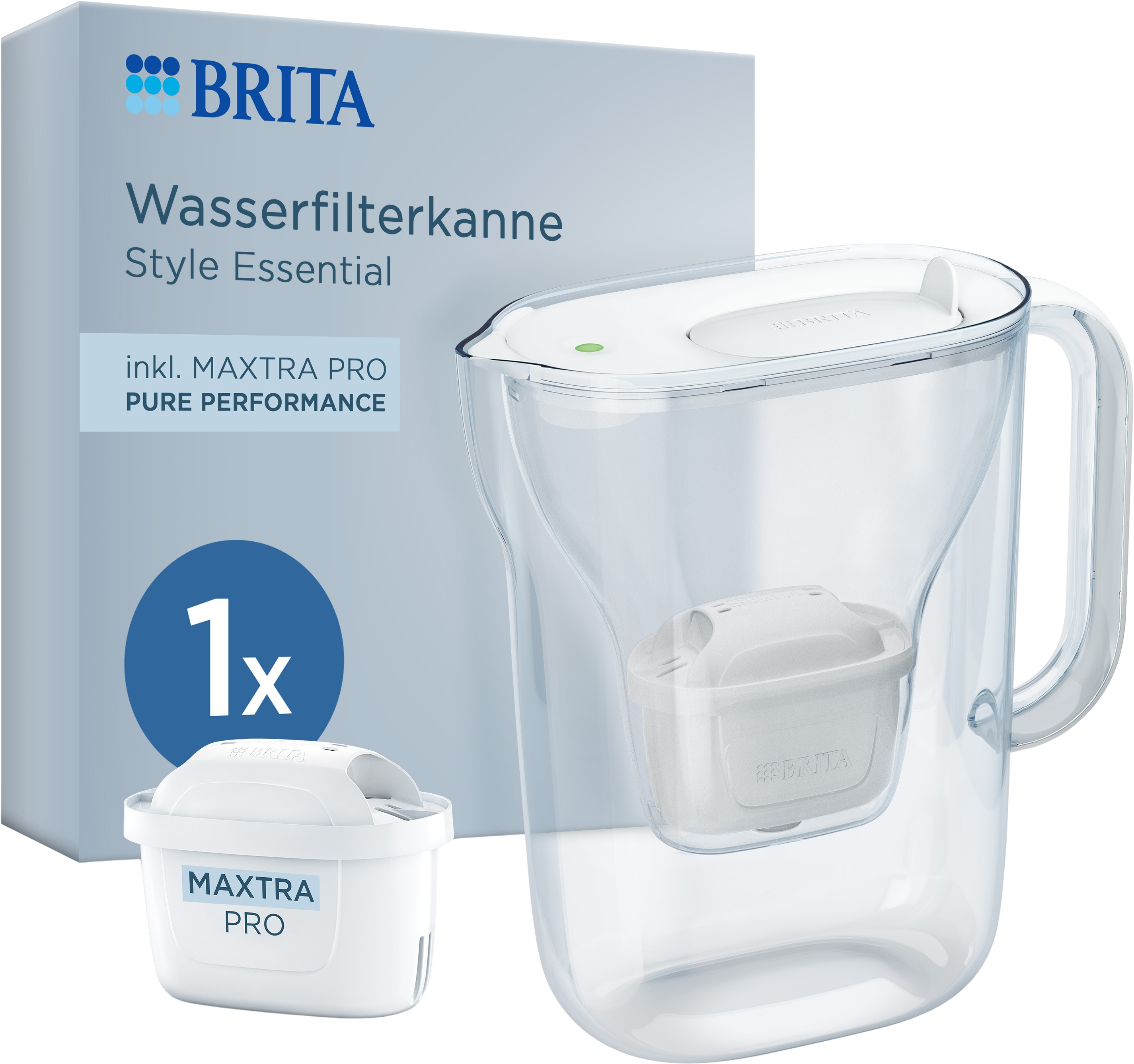 Non hai mai gustato un'acqua così pura e fresca! La caraffa filtrante Style Essential con il filtro MAXTRA PRO PURE PERFORMANCE riduce i microcontaminanti e le sostanze che alterano il sapore, consentendo a caffè, tè e succhi diluiti di sviluppare appieno il loro sapore. La caraffa offre numerose funzioni pratiche, tra cui un moderno indicatore LED che indica quando è il momento di sostituire la cartuccia filtrante.