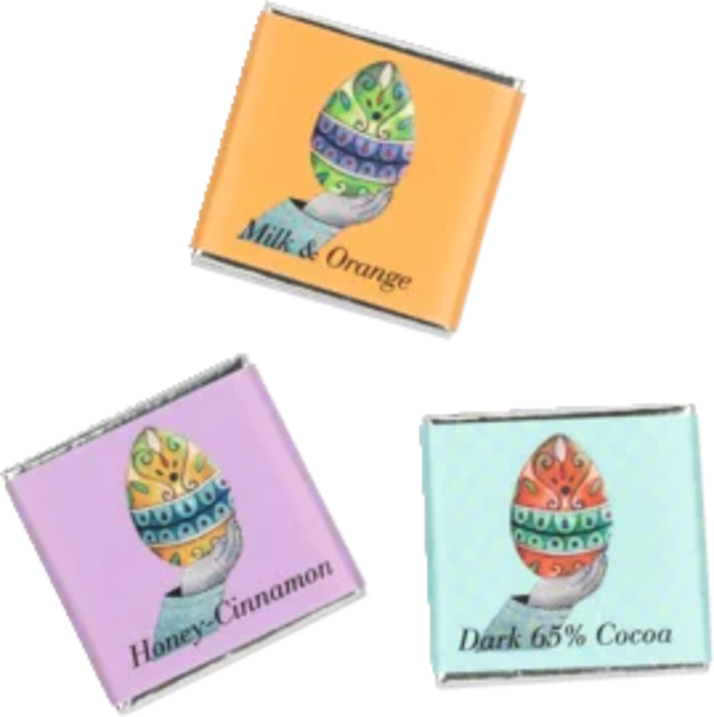 24 raffinate mini tavolette in una confezione dal design pasquale