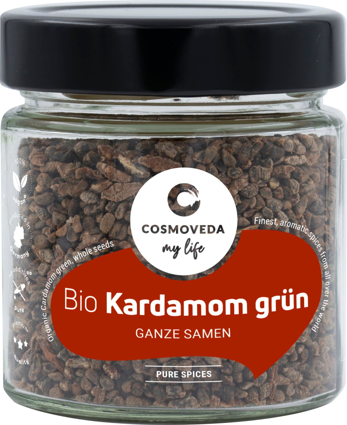 I semi del cardamomo verde vengono spesso macinati ed usati per dare sapore a bevande a base di latte, caffè oppure per deliziosi dolci. Il cardamomo è una spezia molto digeribile ed è una delle spezie più antiche e preziose al mondo, subito dopo allo zafferano ed alla vaniglia. La spezia proviene dal sud dell'India ed oggi cresce in Sri Lanka, Guatemala, Tanzania e Brasile.