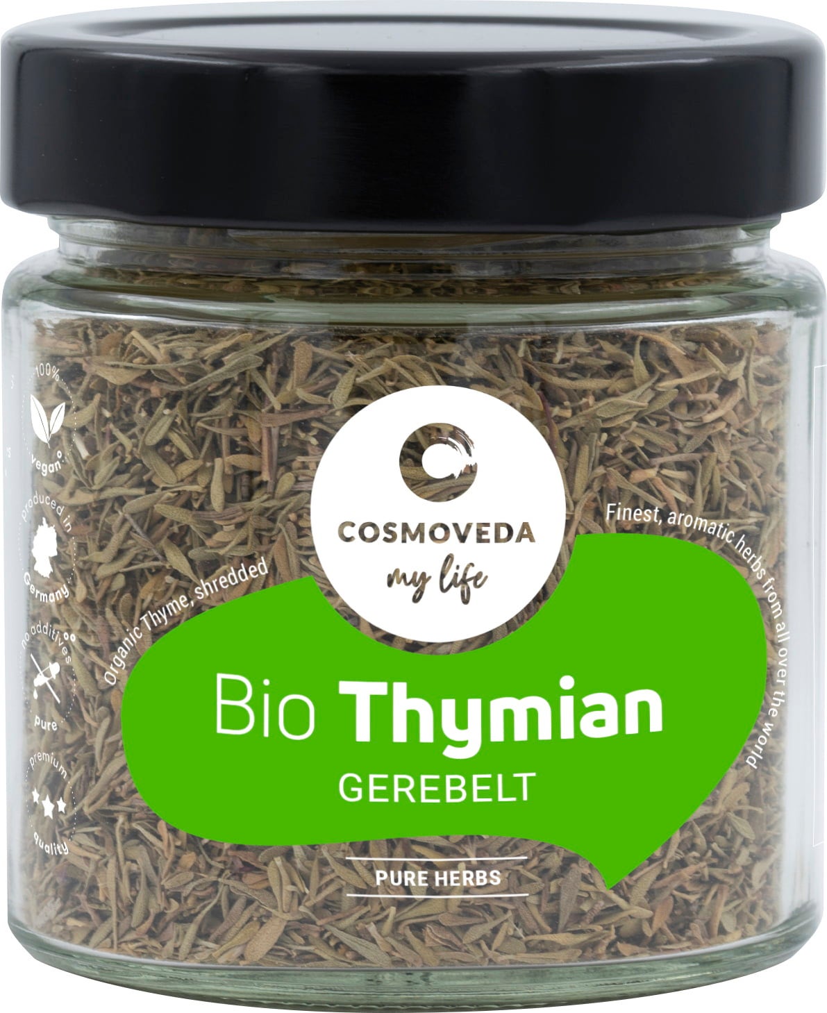 Il timo ha un sapore intenso e pungente che ricorda vagamente il rosmarino. È molto versatile e ideale per insaporire piatti a base di carne, pesce, verdure e legumi. Ottimo negli stufati e nelle zuppe e per esaltare pietanze preparate in forno, va aggiunto durante la cottura in modo da poter sprigionare al meglio il suo aroma.