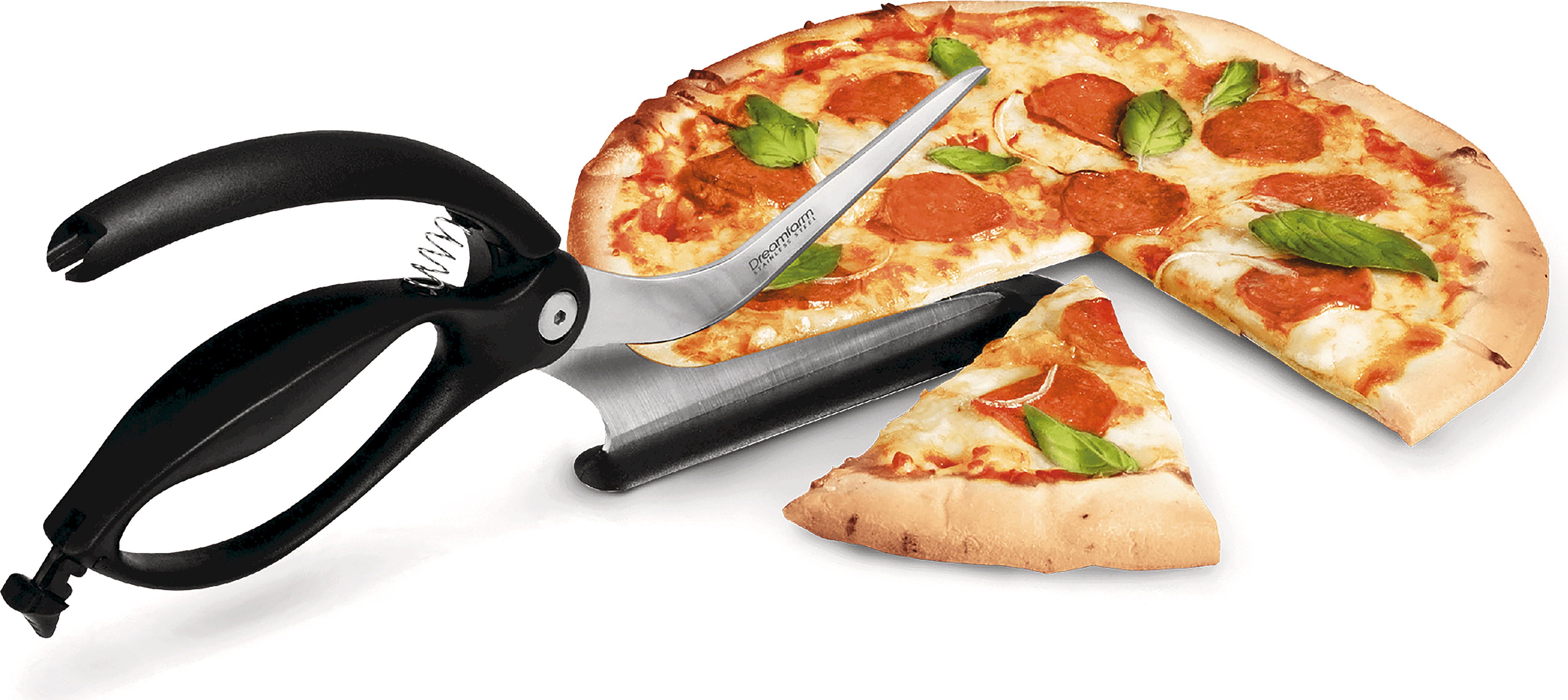 Dimentica le rotelle tagliapizza poco affilate che spostano il condimento: con le forbici per pizza Scizza di Dreamfarm tagliare la pizza diventa semplicissimo! Queste innovative forbici 2-in-1 combinano lame extra lunghe in acciaio inox tedesco temprato per un taglio preciso con una pratica funzione di servizio.