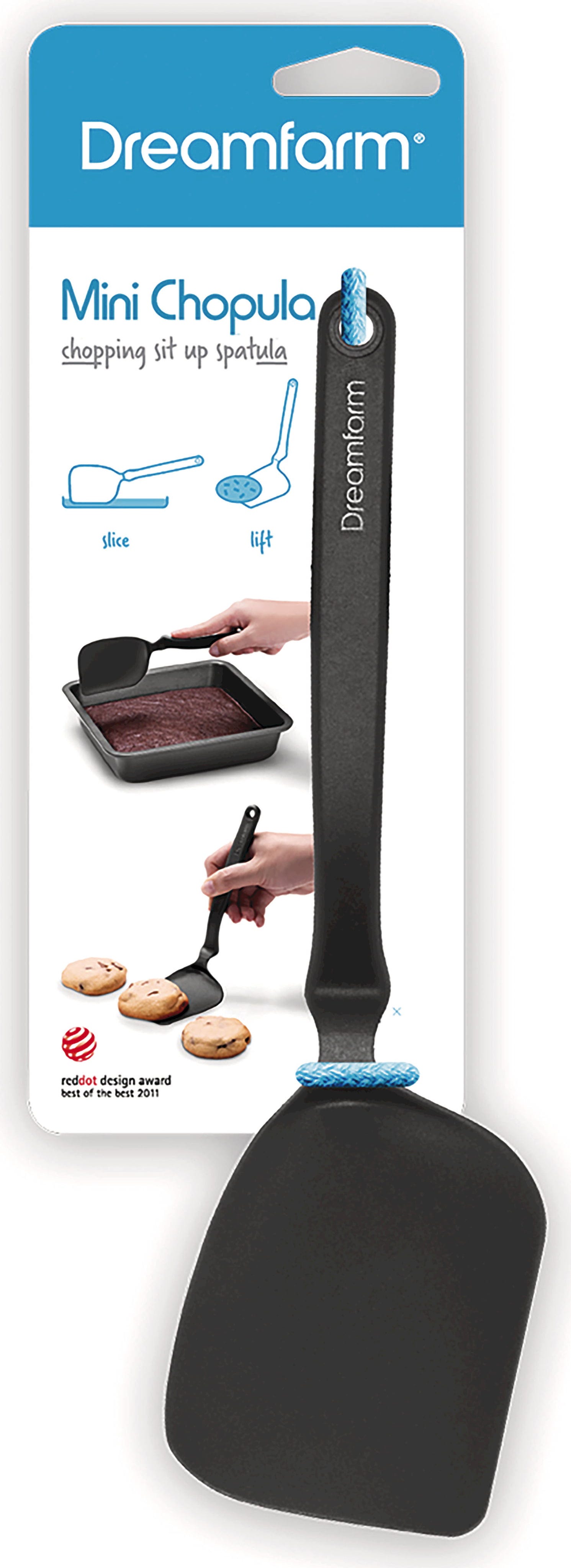 La paletta Mini Chopula di Dreamfarm è l'aiuto ideale per lavori delicati come girare biscotti, uova o brownies. Grazie al manico angolato e alla testa con curvature multiple raggiunge facilmente ogni angolo di padelle e teglie. L'innovativo design “Sit-Up” mantiene la testa sollevata dal piano di lavoro, aiutandoti a tenere tutto sempre pulito.