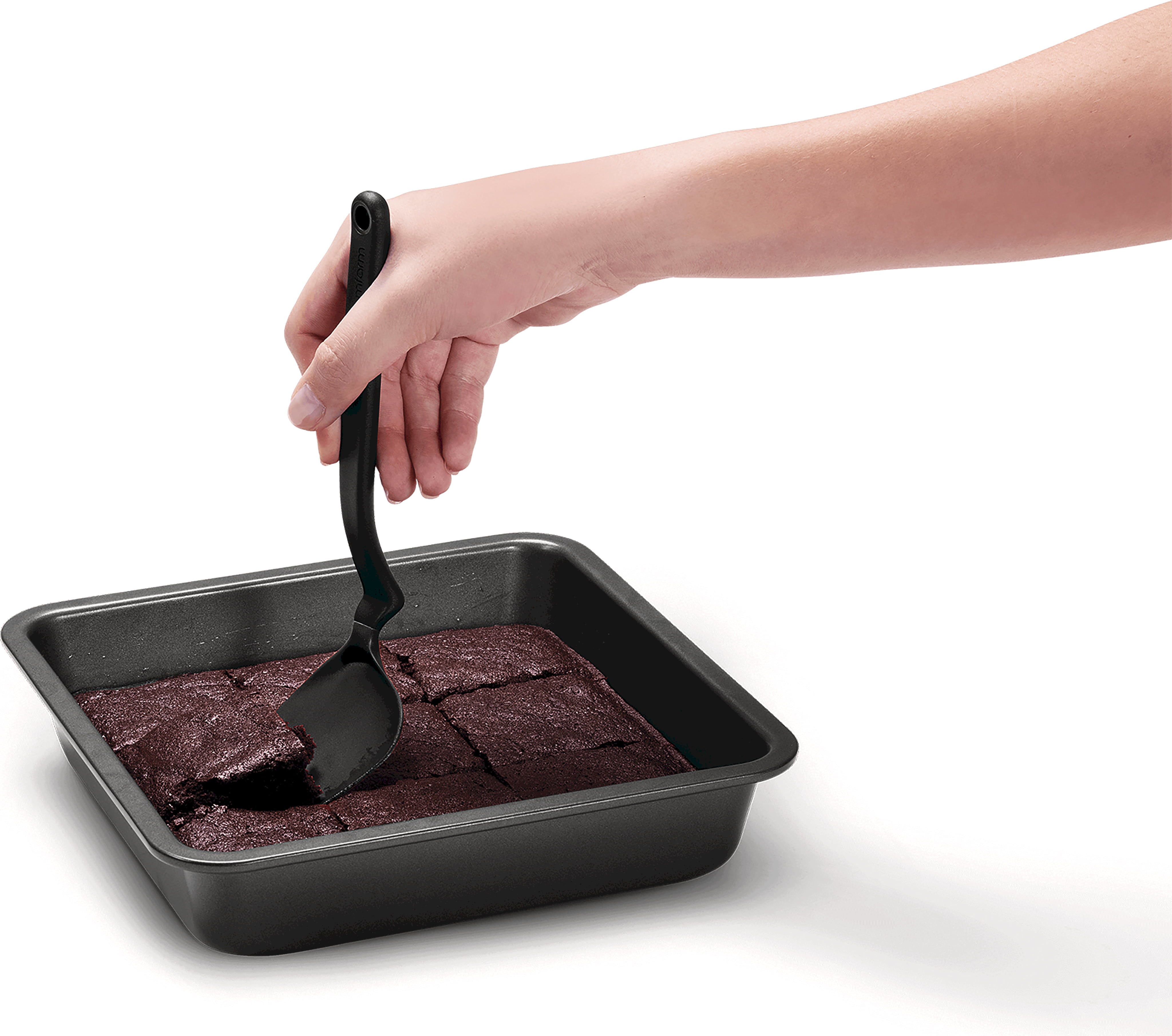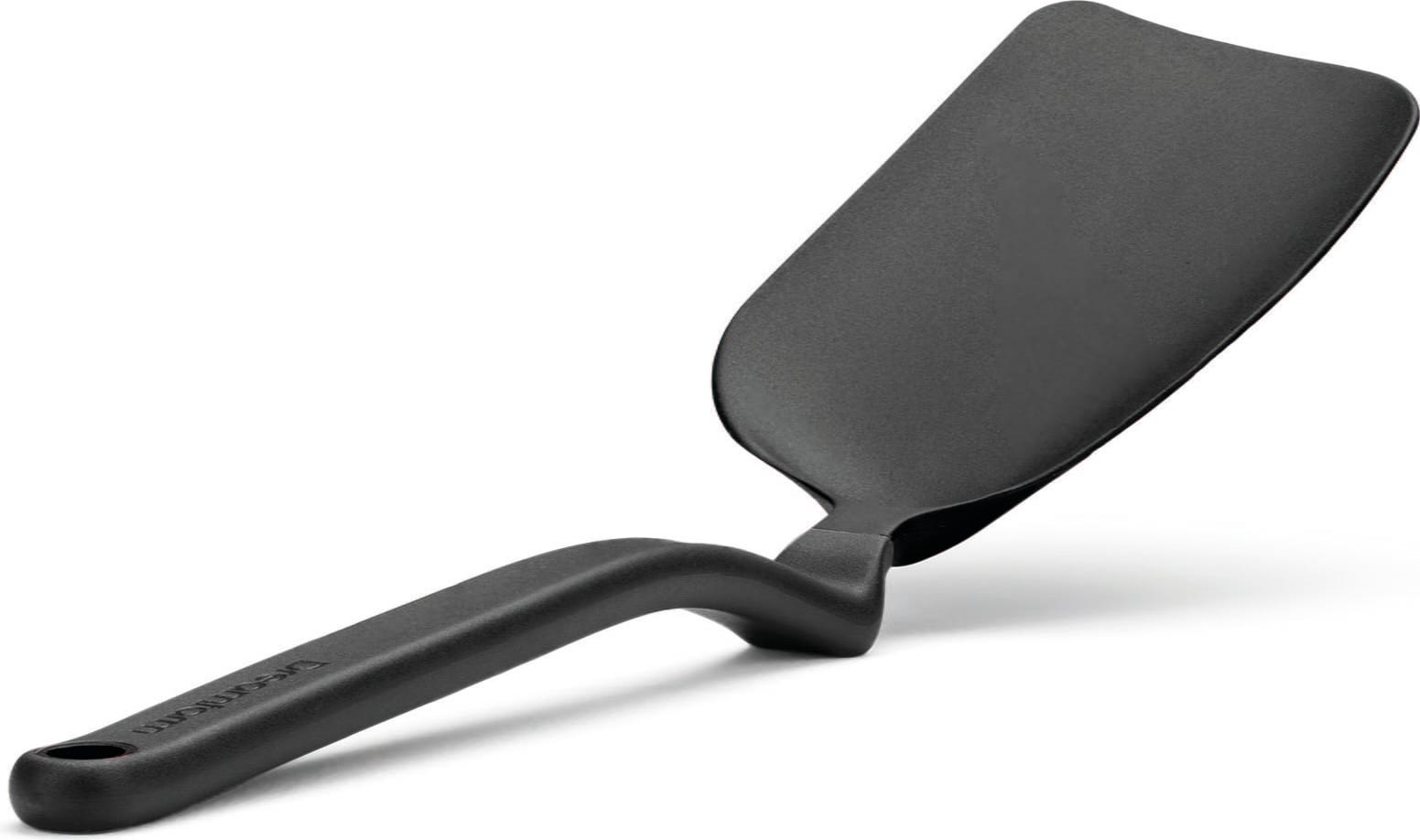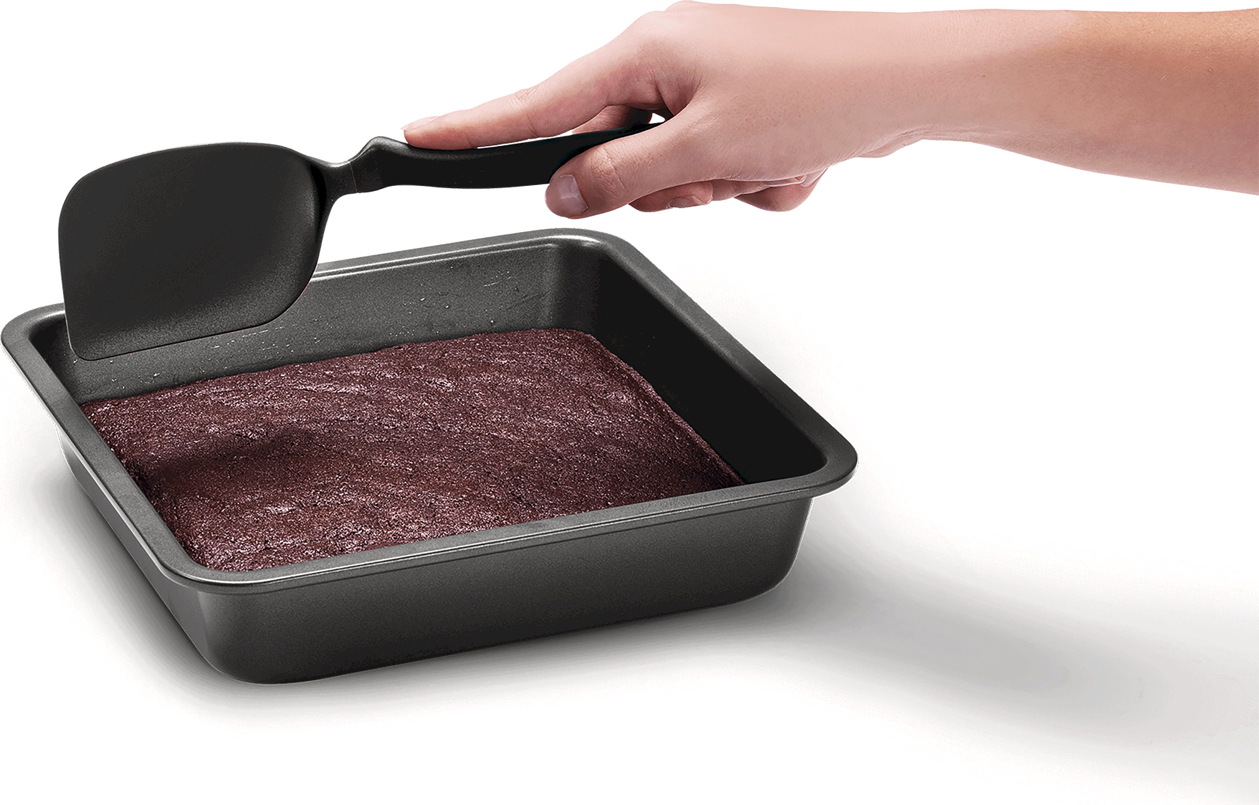 La resistente testa in nylon antiaderente sopporta temperature fino a 250 °C ed è delicata sulle superfici più sensibili, senza graffiarle. Dopo la cottura o la preparazione al forno, questo utensile da cucina pluripremiato può essere lavato comodamente in lavastoviglie.