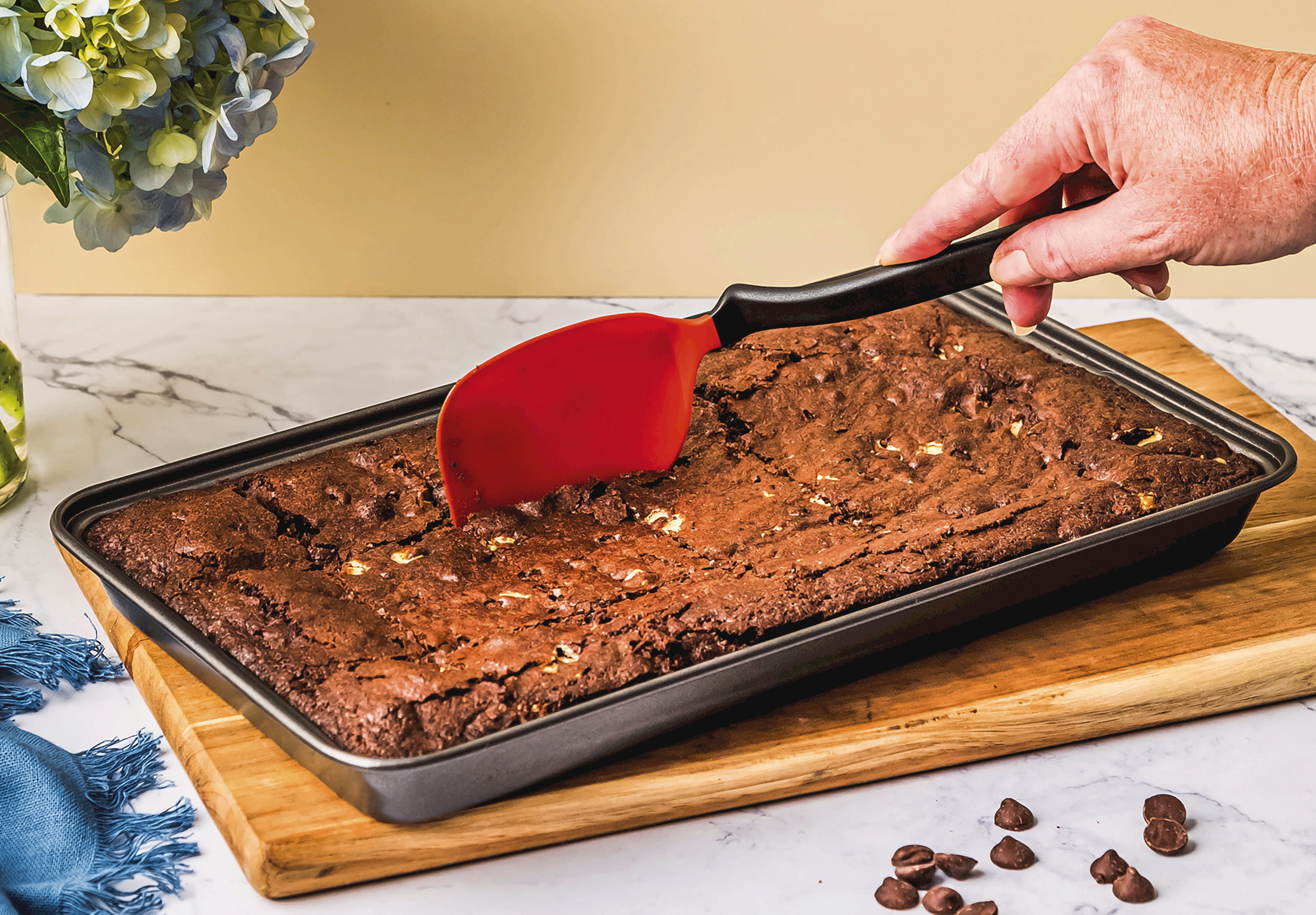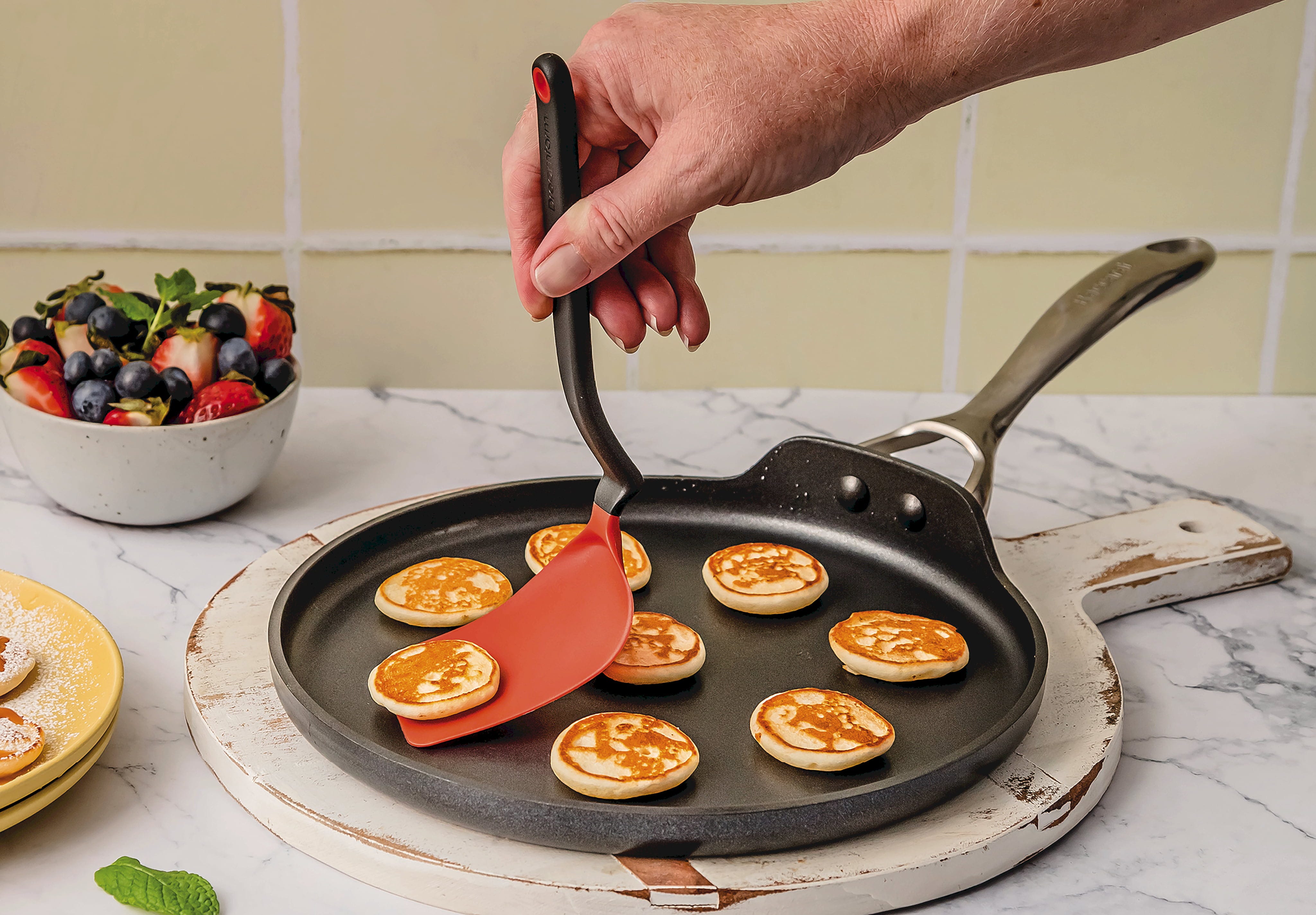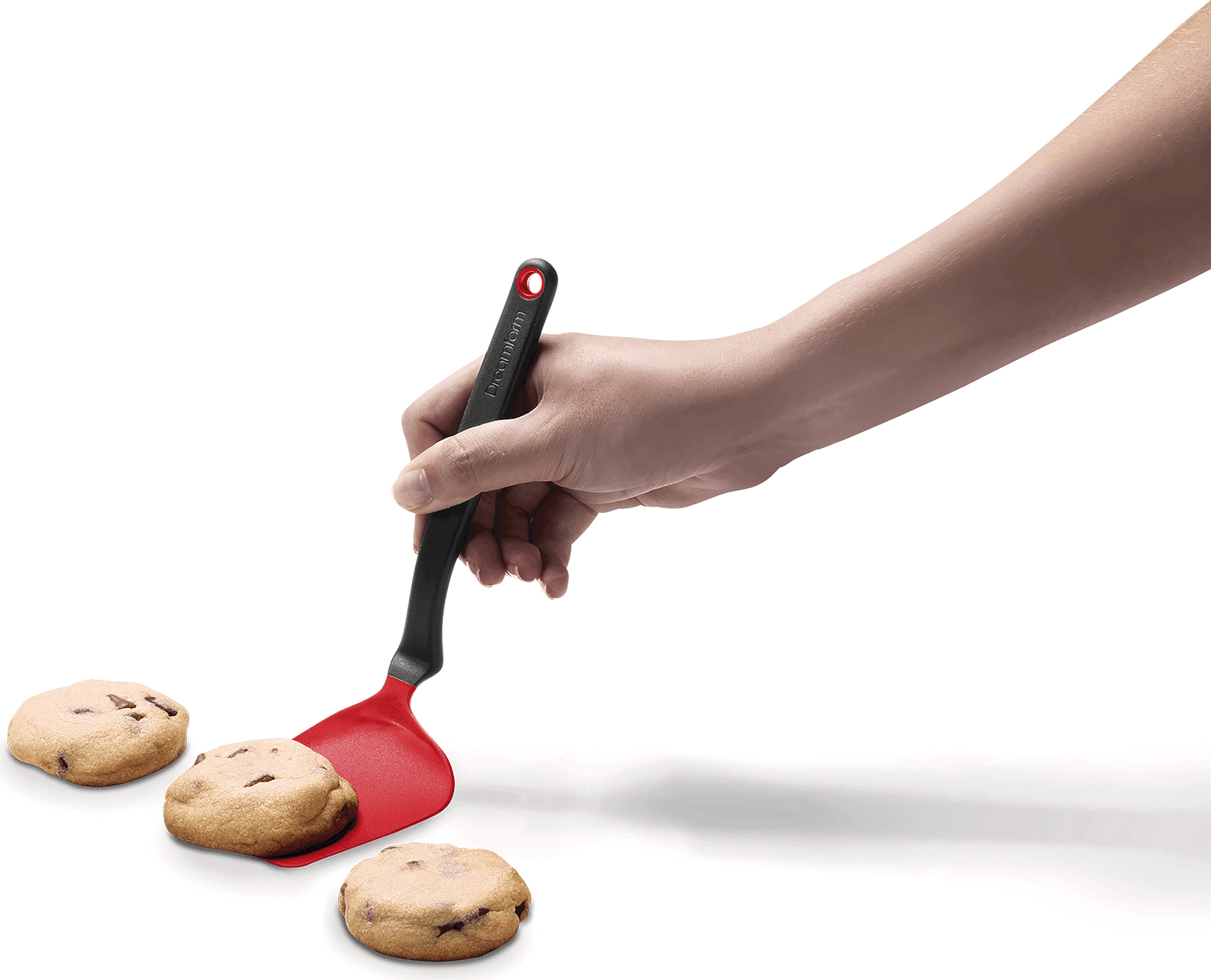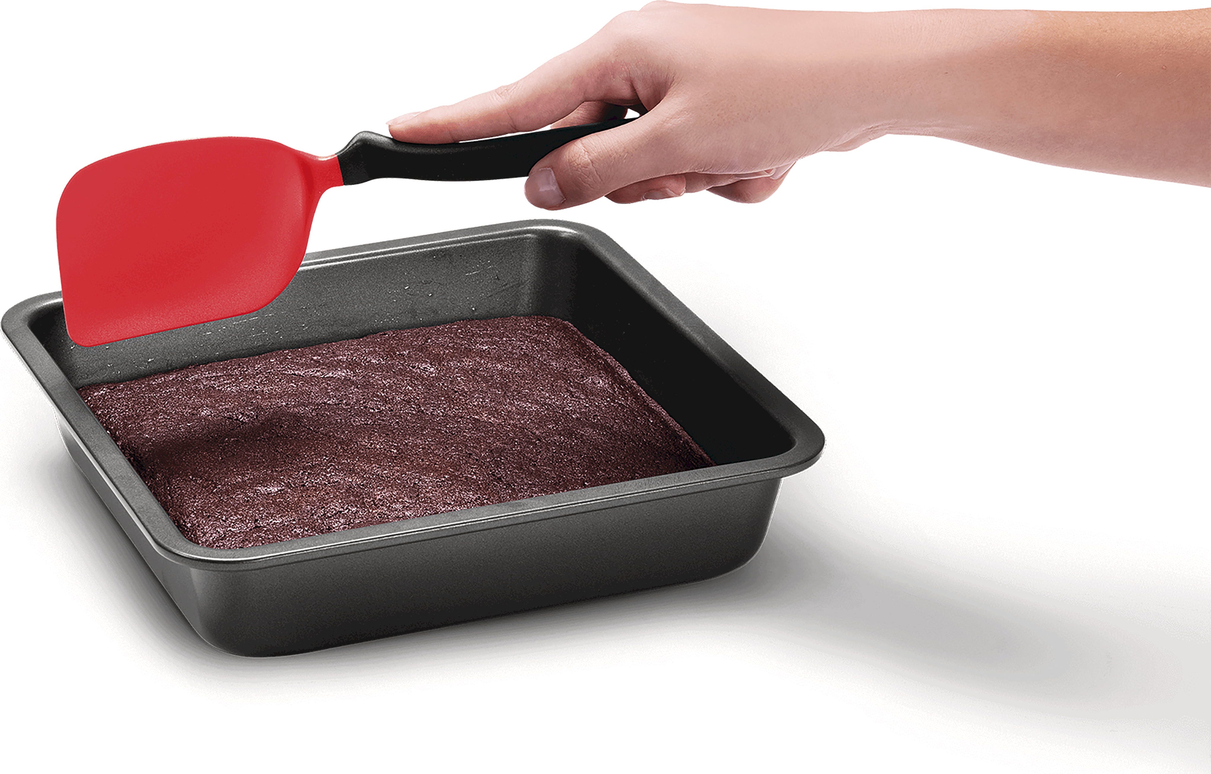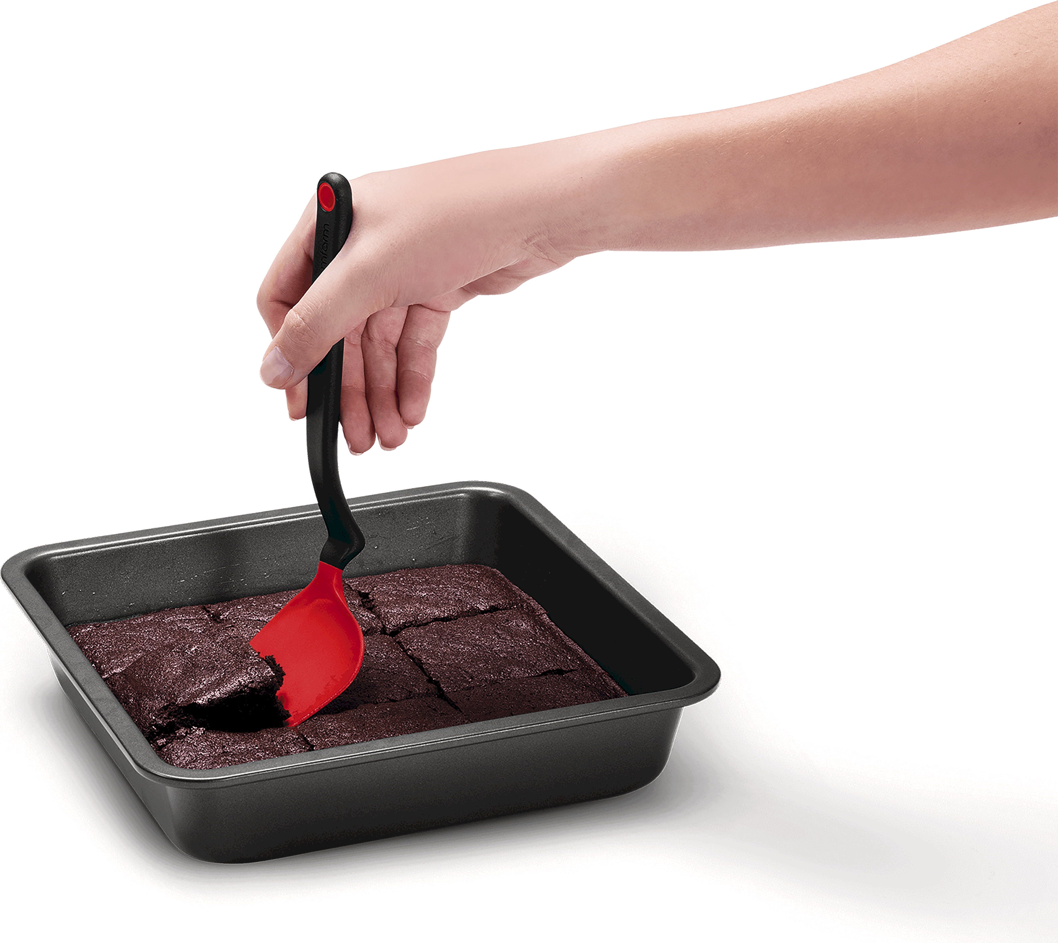 La resistente testa in nylon antiaderente sopporta temperature fino a 250 °C ed è delicata sulle superfici più sensibili, senza graffiarle. Dopo la cottura o la preparazione al forno, questo utensile da cucina pluripremiato può essere lavato comodamente in lavastoviglie.
