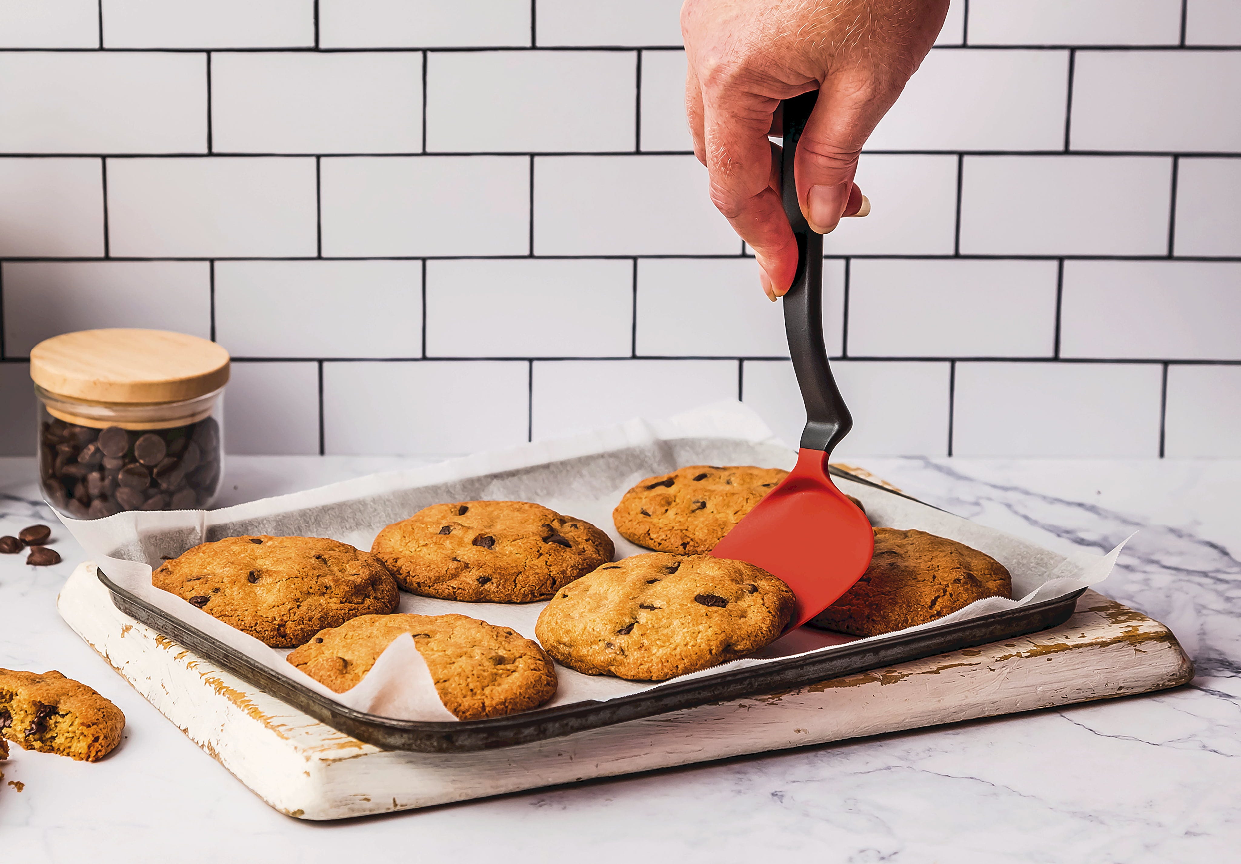 La paletta Mini Chopula di Dreamfarm è l'aiuto ideale per lavori delicati come girare biscotti, uova o brownies. Grazie al manico angolato e alla testa con curvature multiple raggiunge facilmente ogni angolo di padelle e teglie. L'innovativo design “Sit-Up” mantiene la testa sollevata dal piano di lavoro, aiutandoti a tenere tutto sempre pulito.