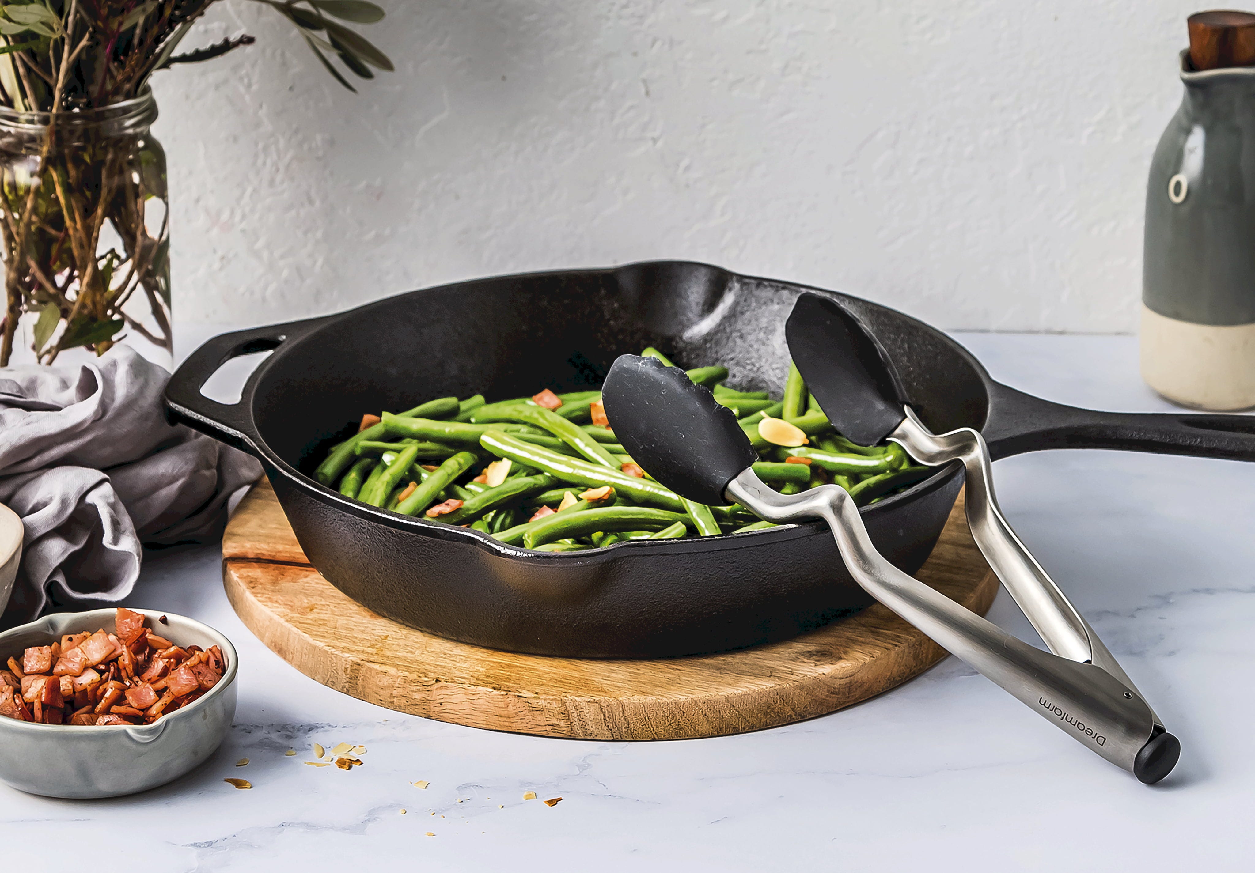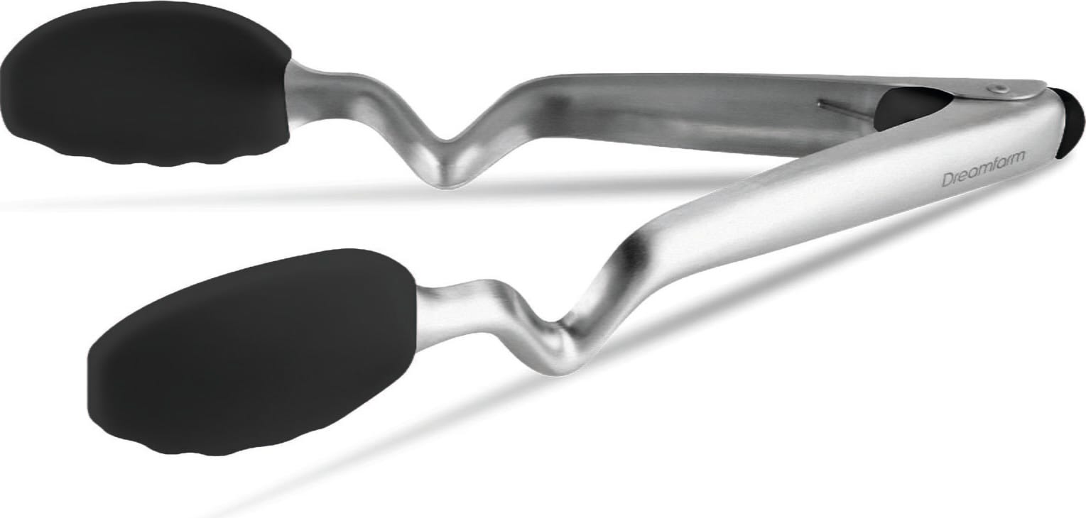 La pinza da cucina Clongs di Dreamfarm è la soluzione ideale per cucinare e servire! Grazie all'esclusiva piega nel manico, le estremità della pinza non toccano mai il piano di lavoro quando la appoggi. Con l'ingegnoso meccanismo a pulsante all'estremità del manico, la pinza si apre facilmente e si blocca in modo sicuro con una semplice pressione.