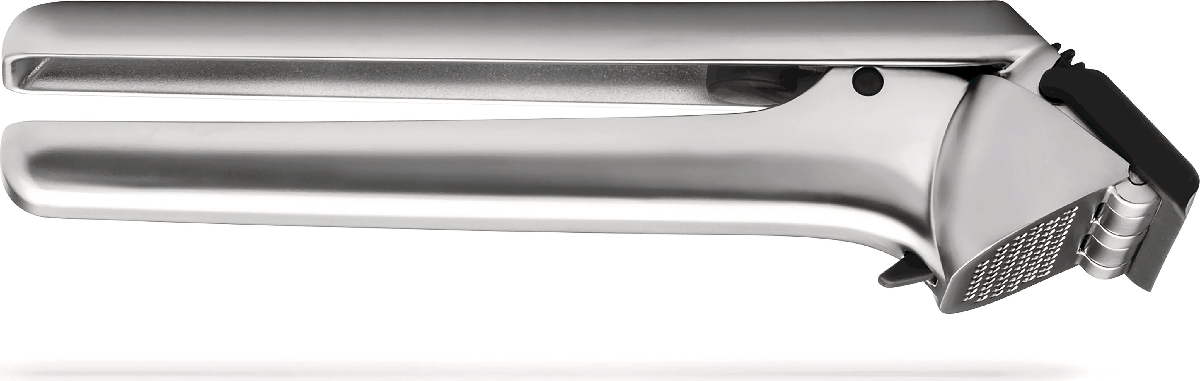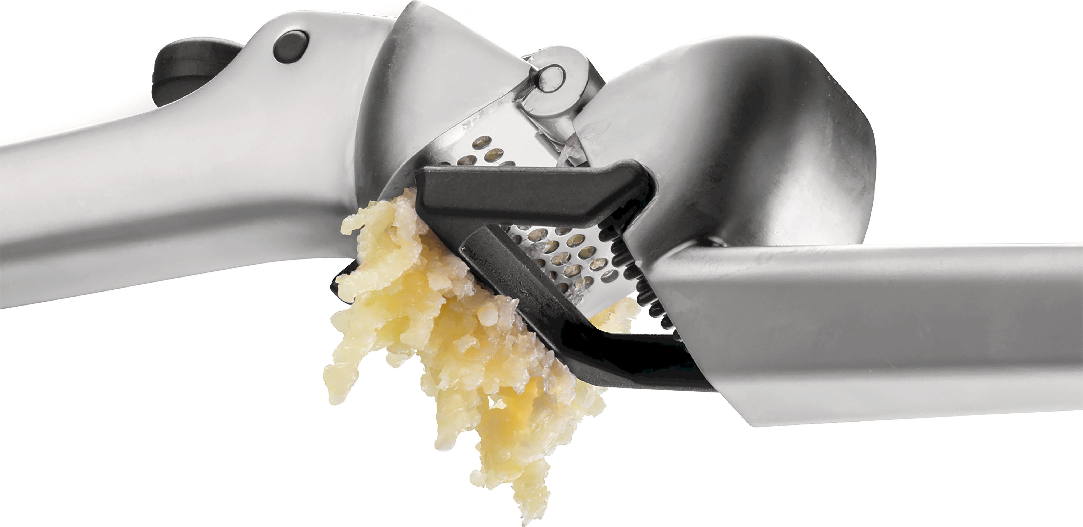 Quando apri lo strumento, un raschietto automatico rimuove i residui dall'interno, mentre l'ingegnoso pulsante “Peel Eject” espelle facilmente le bucce. In questo modo le mani restano pulite e la pressa è subito pronta per essere riutilizzata dopo un rapido risciacquo!