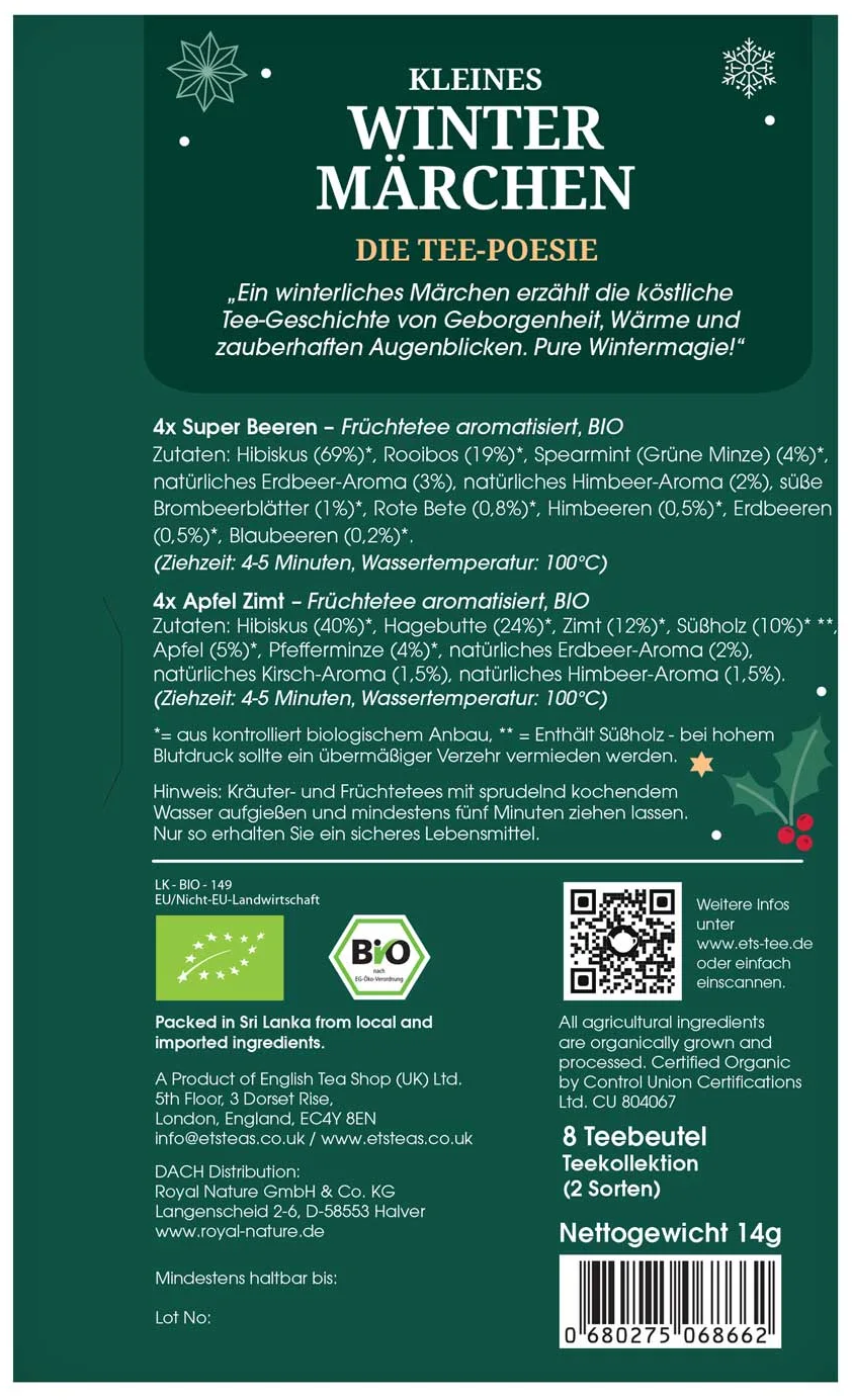 English Tea Shop Set Regalo con Tè e Tisane Bio - Piccola Fiaba Invernale, 8 bustine (14 g)