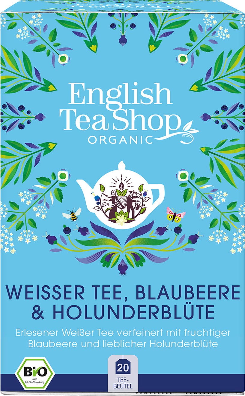 English Tea Shop Tè Bianco Bio con Mirtilli e Fiori di Sambuco, 20 bustine