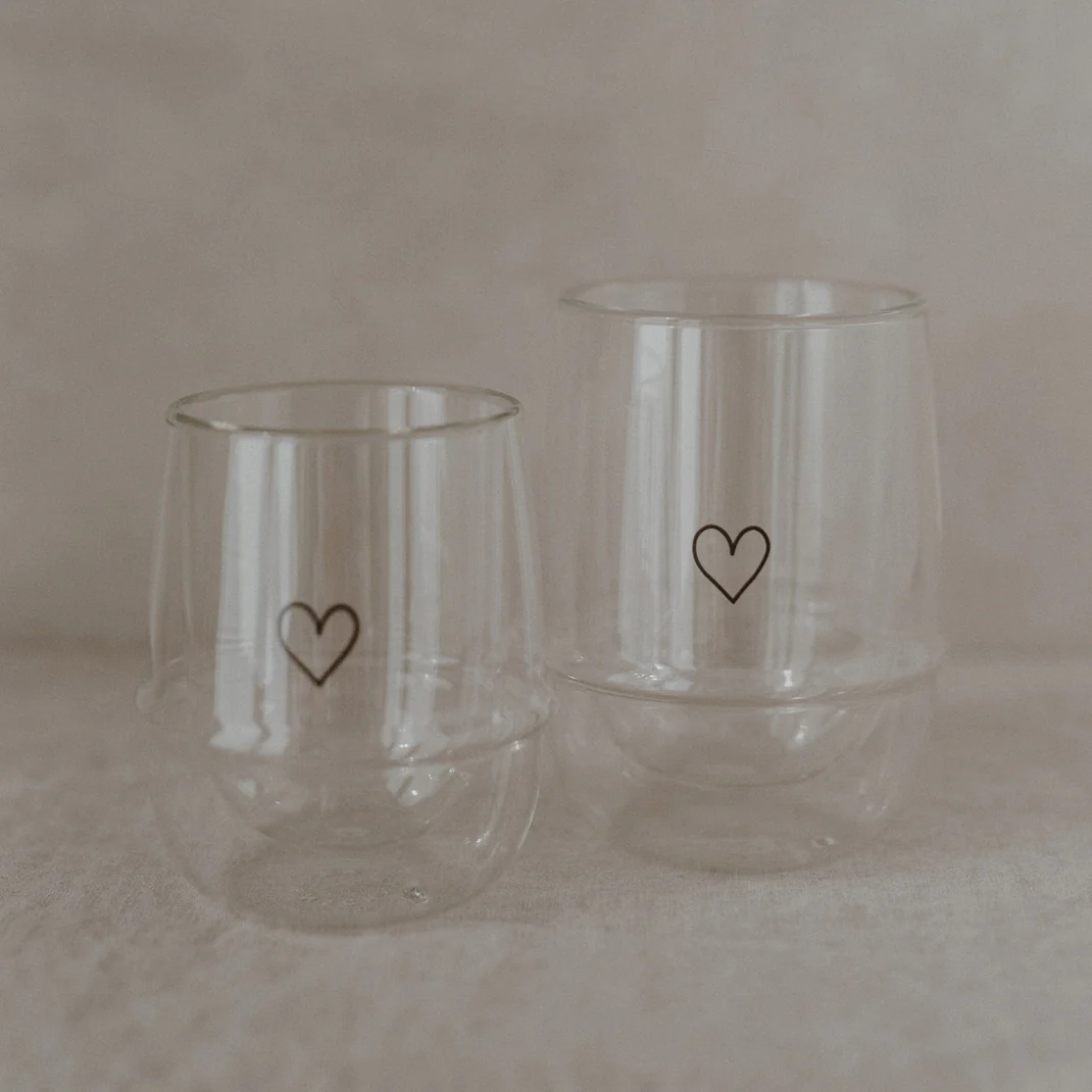 Il bicchiere in vetro a doppia parete con stampa a cuore rende ogni momento di pausa con caffè o tè ancora più speciale. Il design a doppia parete fa sembrare la bevanda sospesa all’interno e mantiene l’esterno piacevolmente fresco: ideale per proteggere le mani. Che sia un cappuccino fumante o un tè freddo rinfrescante, unisce funzionalità pratica ed eleganza.