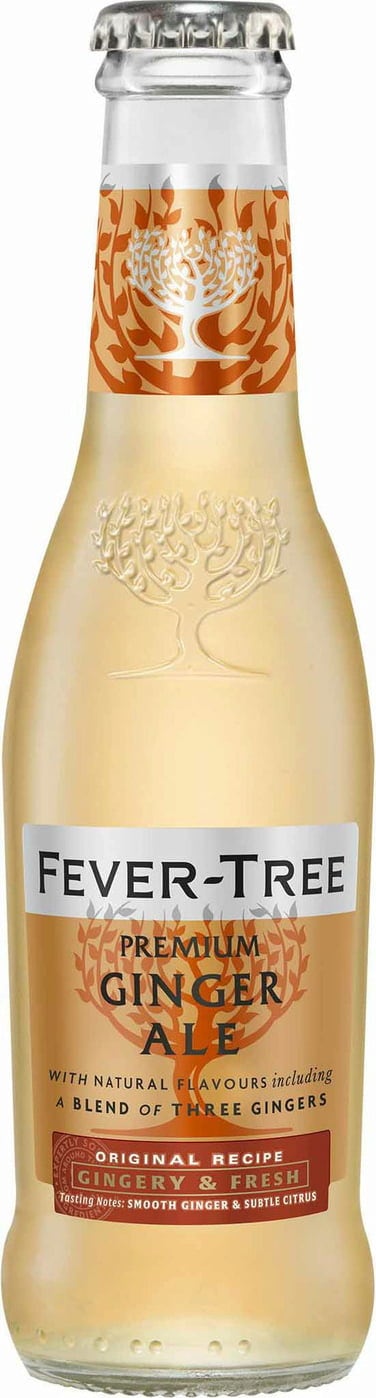Dalla combinazione delle tre migliori varietà di zenzero al mondo, nasce questa bevanda di prima qualità: equilibrata, corposa e intensamente aromatica. Le sfumature di cioccolato e citronella, così come i leggeri aromi vegetali, supportano l'eccezionale sapore di zenzero e rendono questo Ginger Ale il compagno perfetto per il whisky, il bourbon e altri alcolici per creare originali long drink. Anche da solo, magari con ghiaccio, Fever Tree Ginger Ale è un piacere rinfrescante che non è secondo a nessuno.