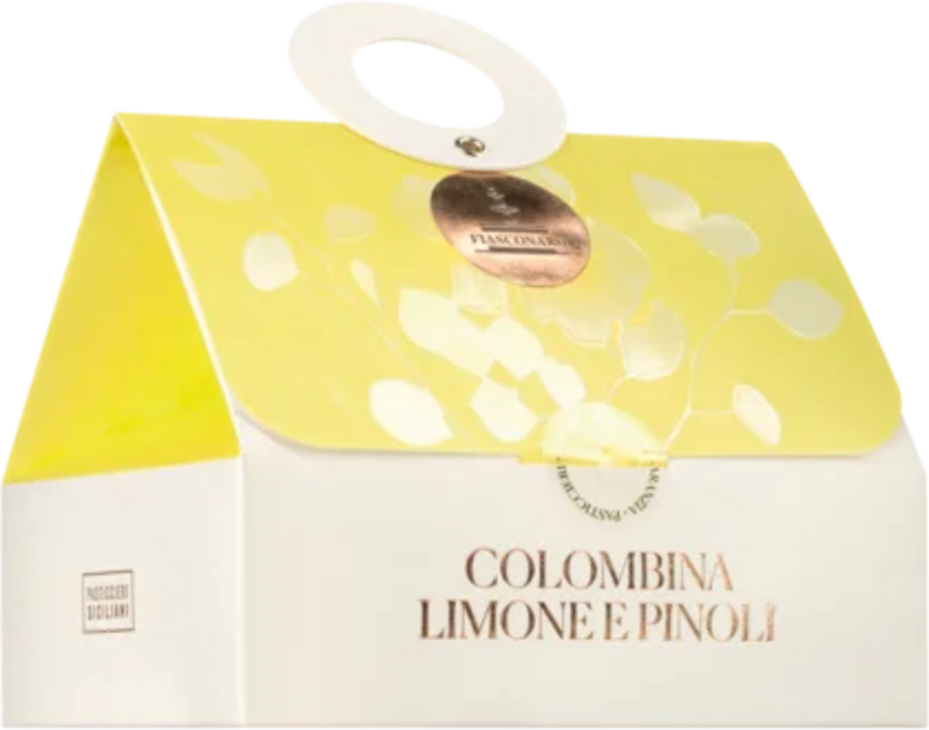Assapora con questa piccola Colombina la raffinata leggerezza dell'arte pasticcera firmata Fiasconaro. Il soffice impasto lievitato è arricchito con pasta ed essenza di limone di Sicilia, che conferiscono al dolce una nota particolarmente fresca e mediterranea. La classica glassa alle mandorle, completata da una guarnizione di pinoli croccanti e granella di zucchero, crea un armonioso gioco di consistenze.
