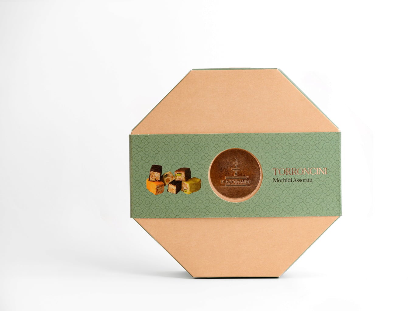 Un dolce ricordo, ideale sia per le feste natalizie che per altre occasioni. L'elegante confezione contiene 6 diverse varietà di torroncini morbidi a base di mandorle e miele siciliani. Ogni torroncino è ricoperto di cioccolato nelle seguenti varietà: