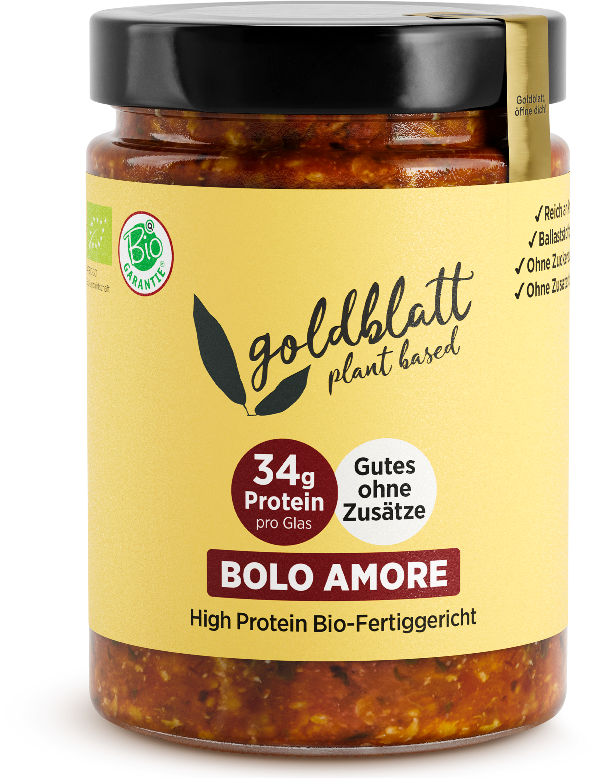 Un classico italiano che scalda il cuore. Nel piatto pronto Bolo Amore di Goldblatt, il saporito macinato di soia incontra pomodori maturati al sole e un'esquisita miscela di erbe mediterranee. Il risultato: una bolognese aromatica, vegana e ricca di proteine, tutta da amare.