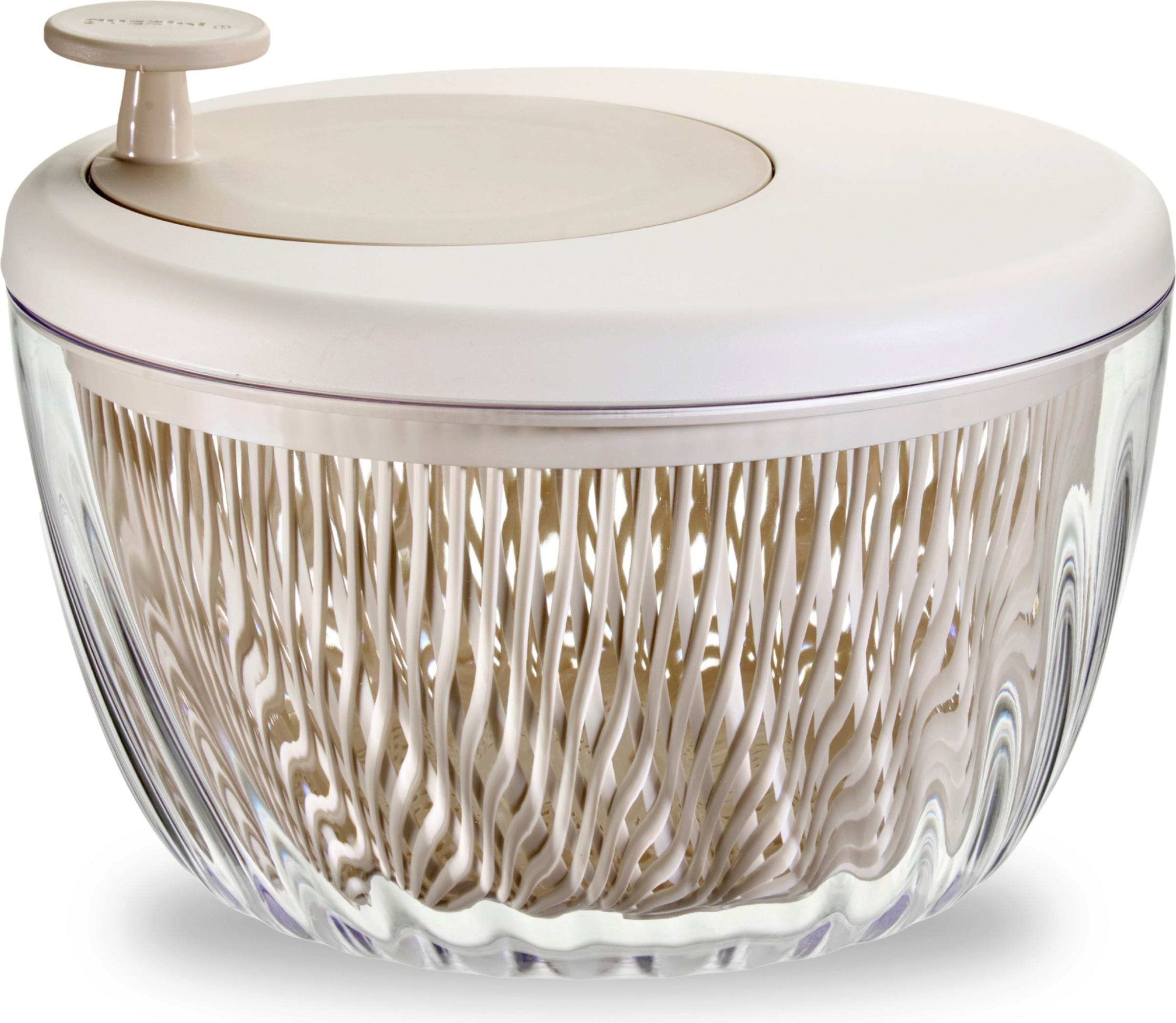 Gira, conserva, scongela, servi! Questo bellissimo set con centrifuga per insalata in plastica di alta qualità è un vero multitalento. Grazie alla sua forma elegante, la ciotola trasparente fa sempre bella figura sulla tavola imbandita e fa venire voglia di mangiare insalate croccanti. Può anche essere chiusa con il coperchio e conservata in frigorifero.