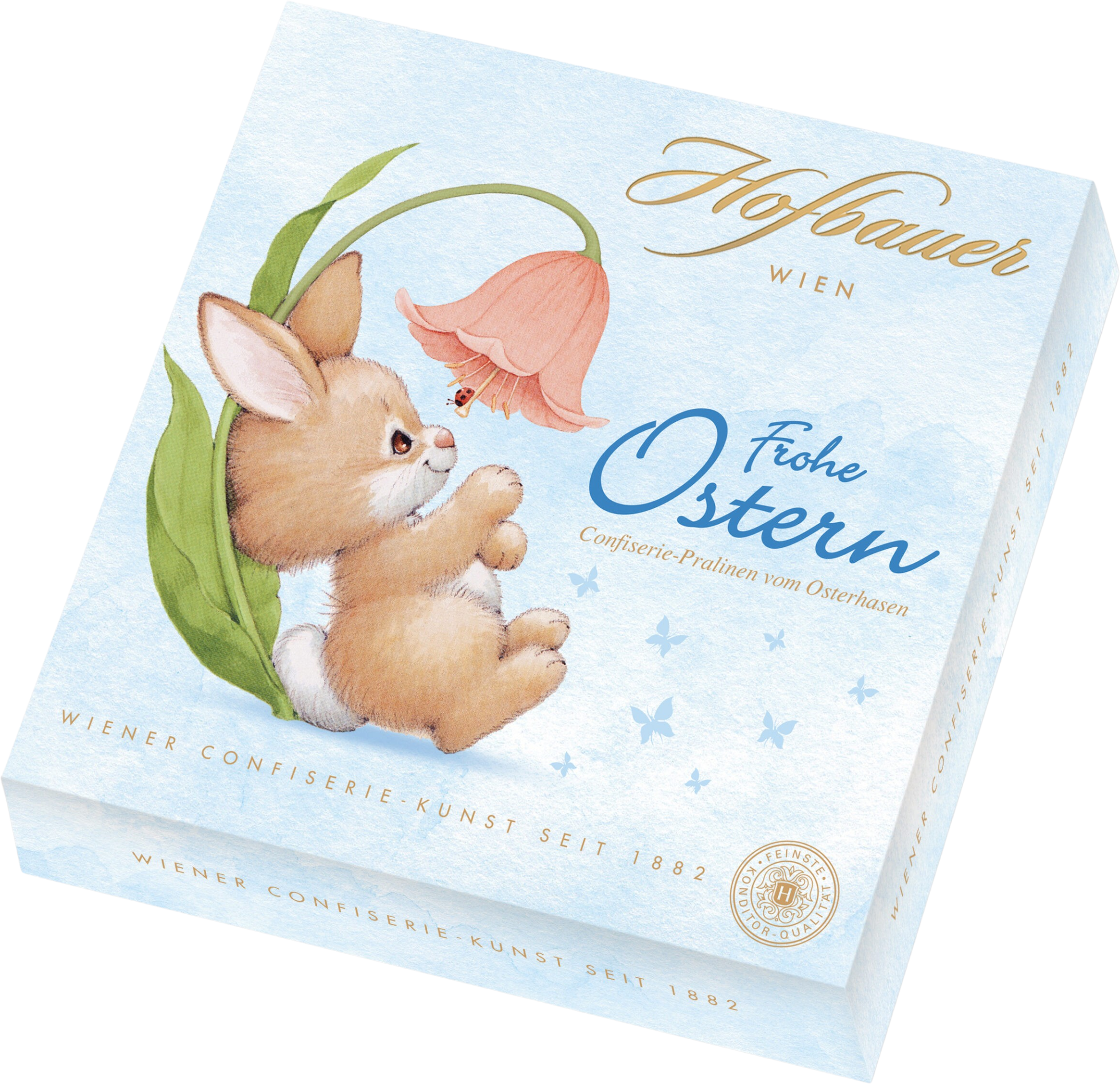 Con l’edizione Buona Pasqua di Hofbauer assapori la migliore arte della confiserie viennese nella sua espressione più raffinata. Lasciati conquistare da praline realizzate con cura artigianale e grande attenzione ai dettagli. All'interno della confezione scoprirai tre diversi design pasquali, curati con amore, che offrono varietà sia dal punto di vista estetico che del gusto.