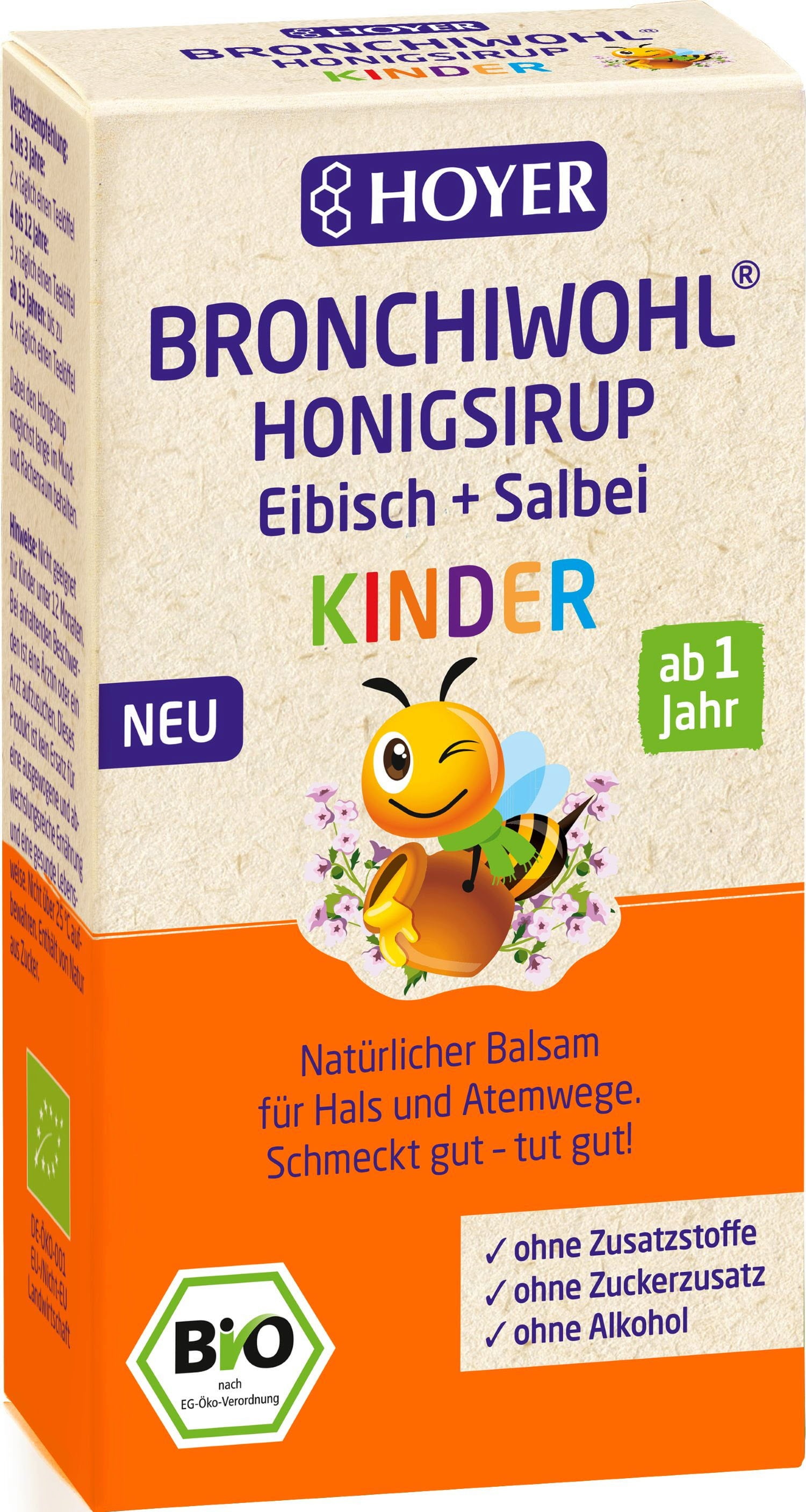 HOYER Bronchiwohl® Sciroppo al Miele con Altea e Salvia – per Bambini, 250 g