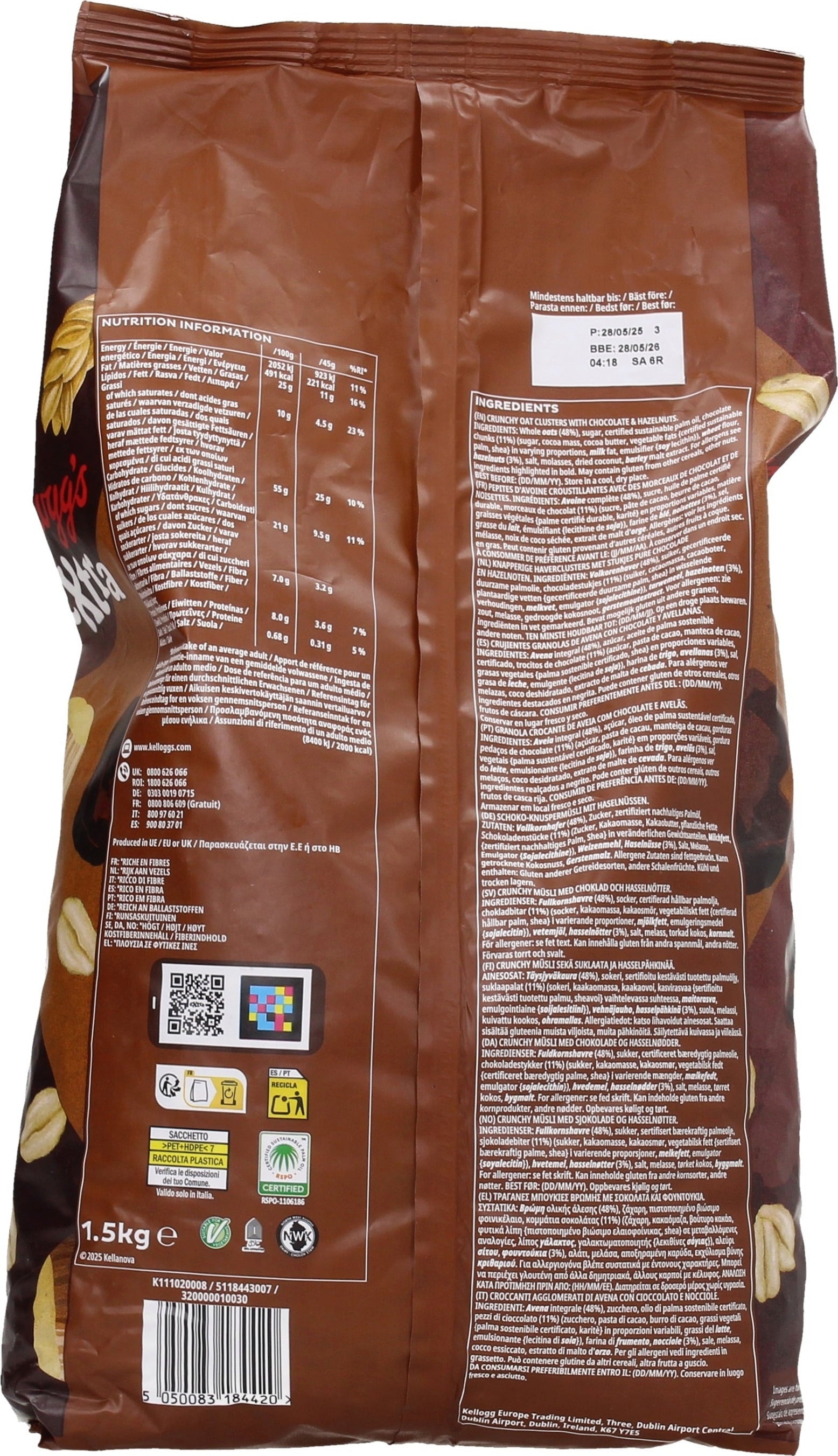 Kelloggs Crunchy Granola - Cioccolato e Nocciole, 1,50 kg