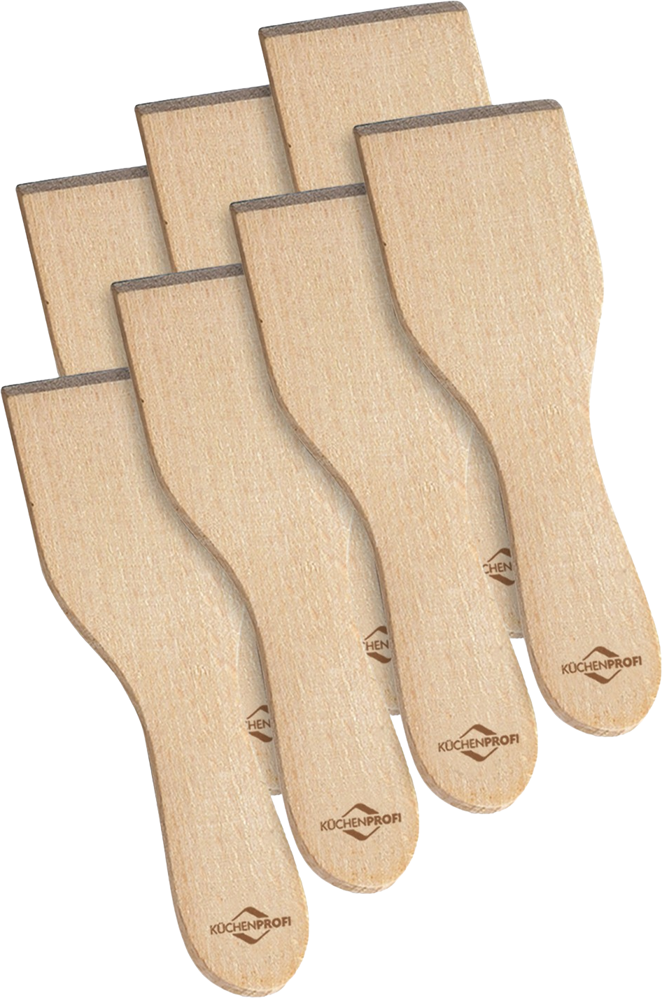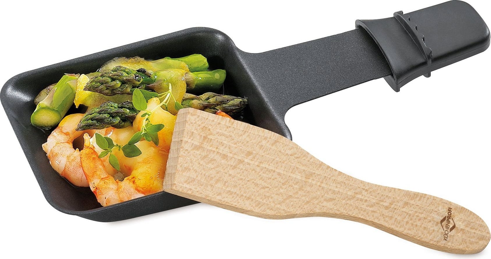 Con le spatoline in legno per raclette, disponibili nel pratico set da 8 pezzi, le specialità preparate passano dal padellino al piatto in un attimo.
