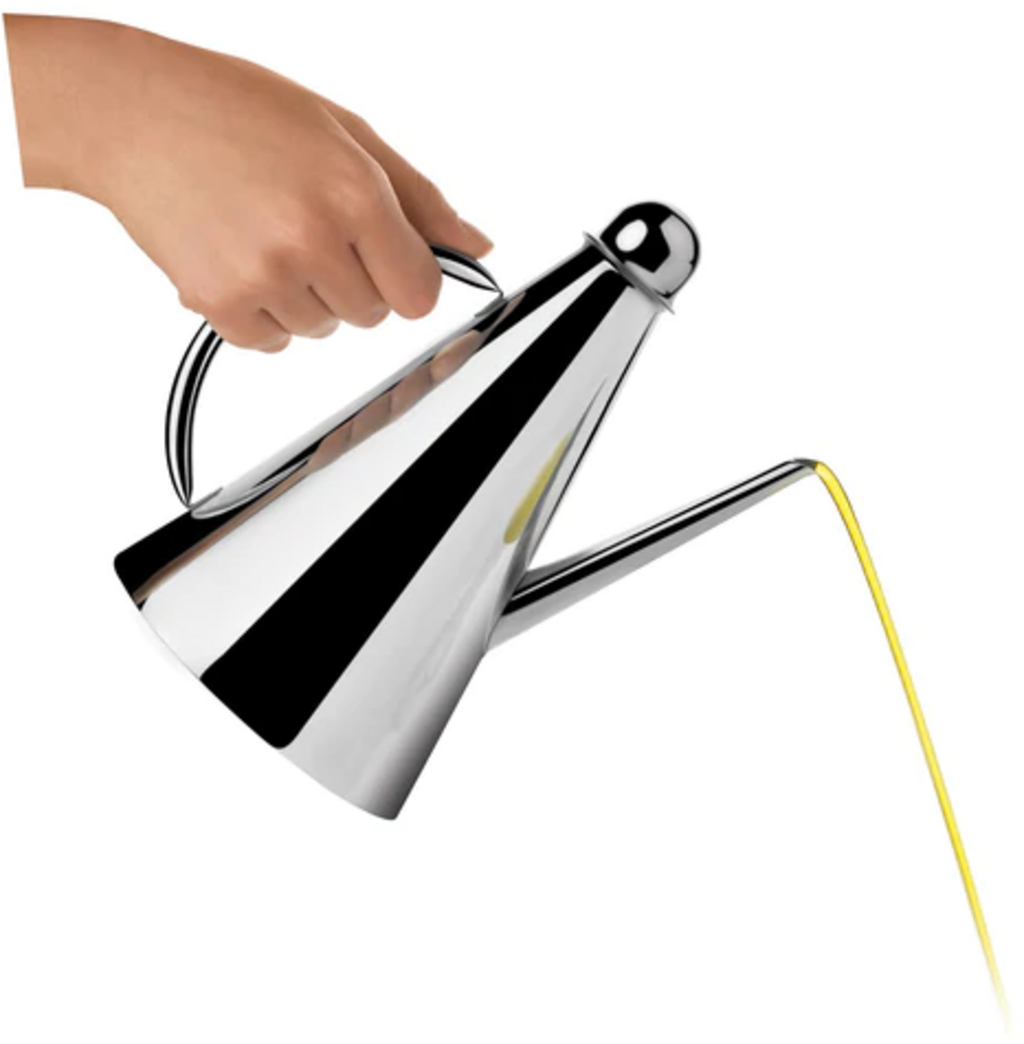 Se si versa l'olio da un normale recipiente è quasi impossibile impedire che l'ultima goccia finisca sulla tovaglia, e si è costretti a ricorrere sempre all'uso del tovagliolo. Adesso tutto questo non è più necessario, con questa oliera in acciaio inossidabile elegante e di facile manutenzione, che può essere sistemata direttamente sul tavolo.