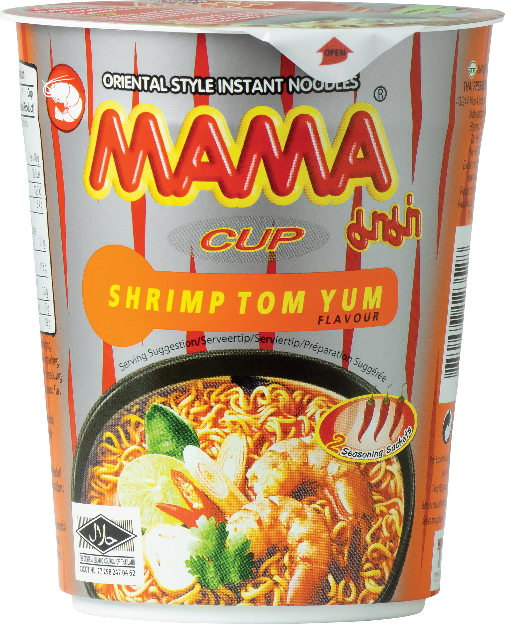 I noodles istantanei Shrimps Tom Yum in cup di MAMA combinano noodles delicati con la classica combinazione di gamberi, chili ed erbe aromatiche – la tipica zuppa Tom Yum nel pratico formato cup.