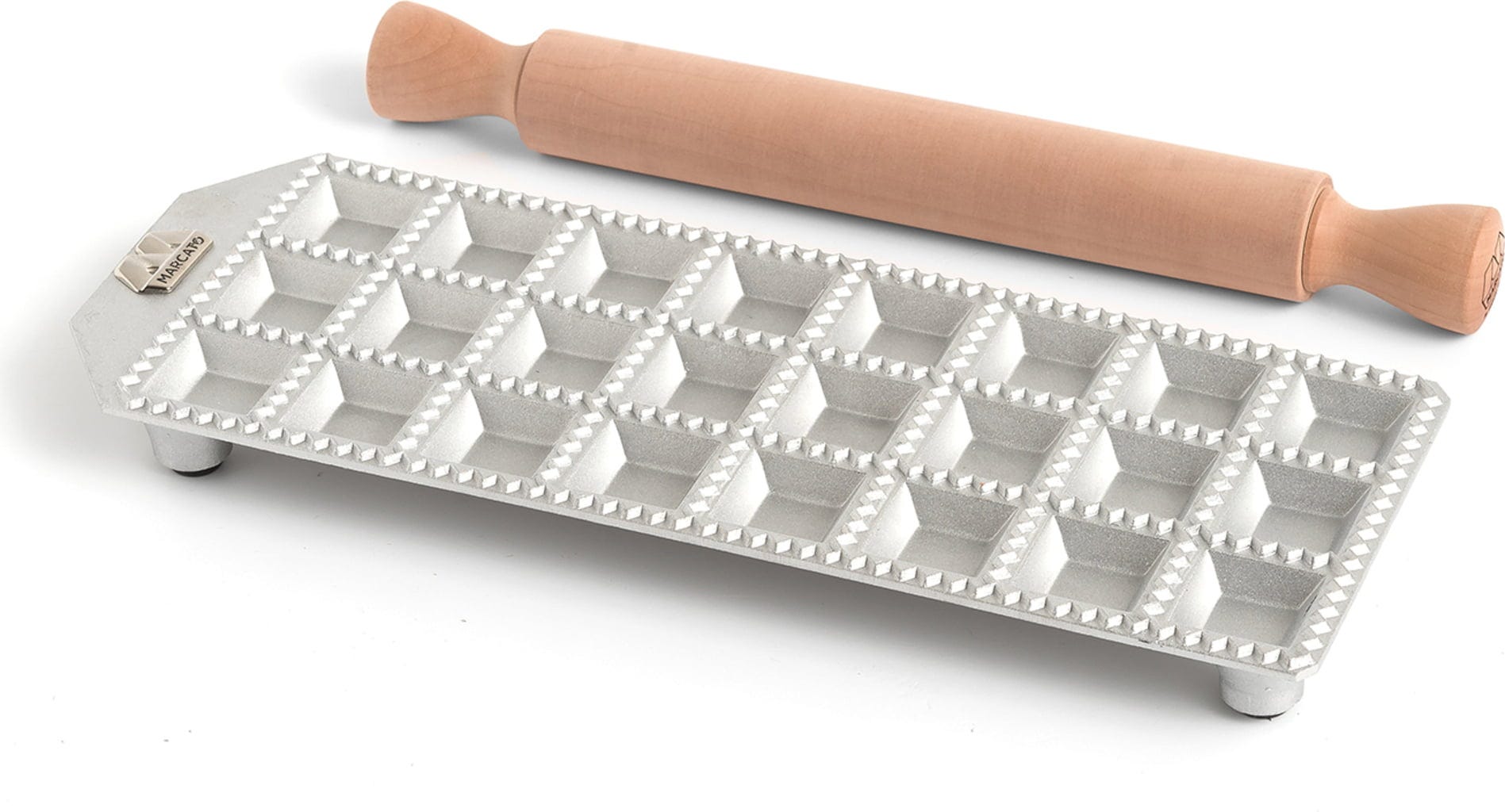 Il fantastico raviolatore del brand Marcato è pensato per coloro che amano la cucina e soprattutto la pasta ripiena. Disponibile in diverse misure, l'accessorio viene consegnato con un pratico mattarello in legno massello. Al passaggio del mattarello sulla sfoglia, il ripieno dei ravioli risulta perfettamente sigillato, di modo che in fase di cottura la farcitura non fuoriesca.