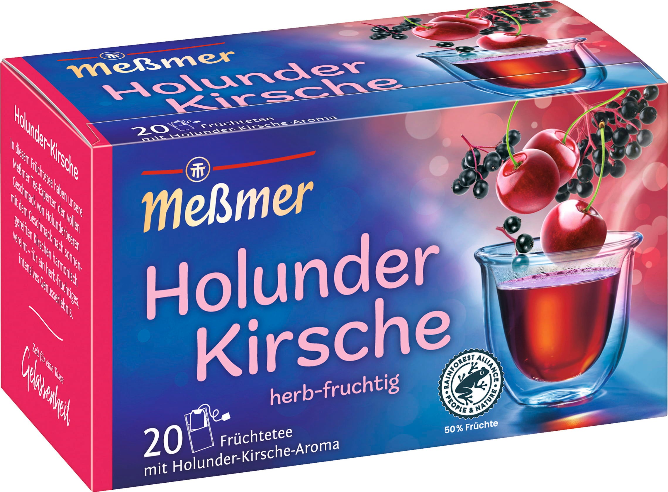 Concediti un momento di piacere intenso con l’infuso di sambuco e ciliegia Meßmer. Sambuco, ibisco, rosa canina e mela si uniscono a un delizioso aroma di ciliegia per un’esperienza fruttata unica.