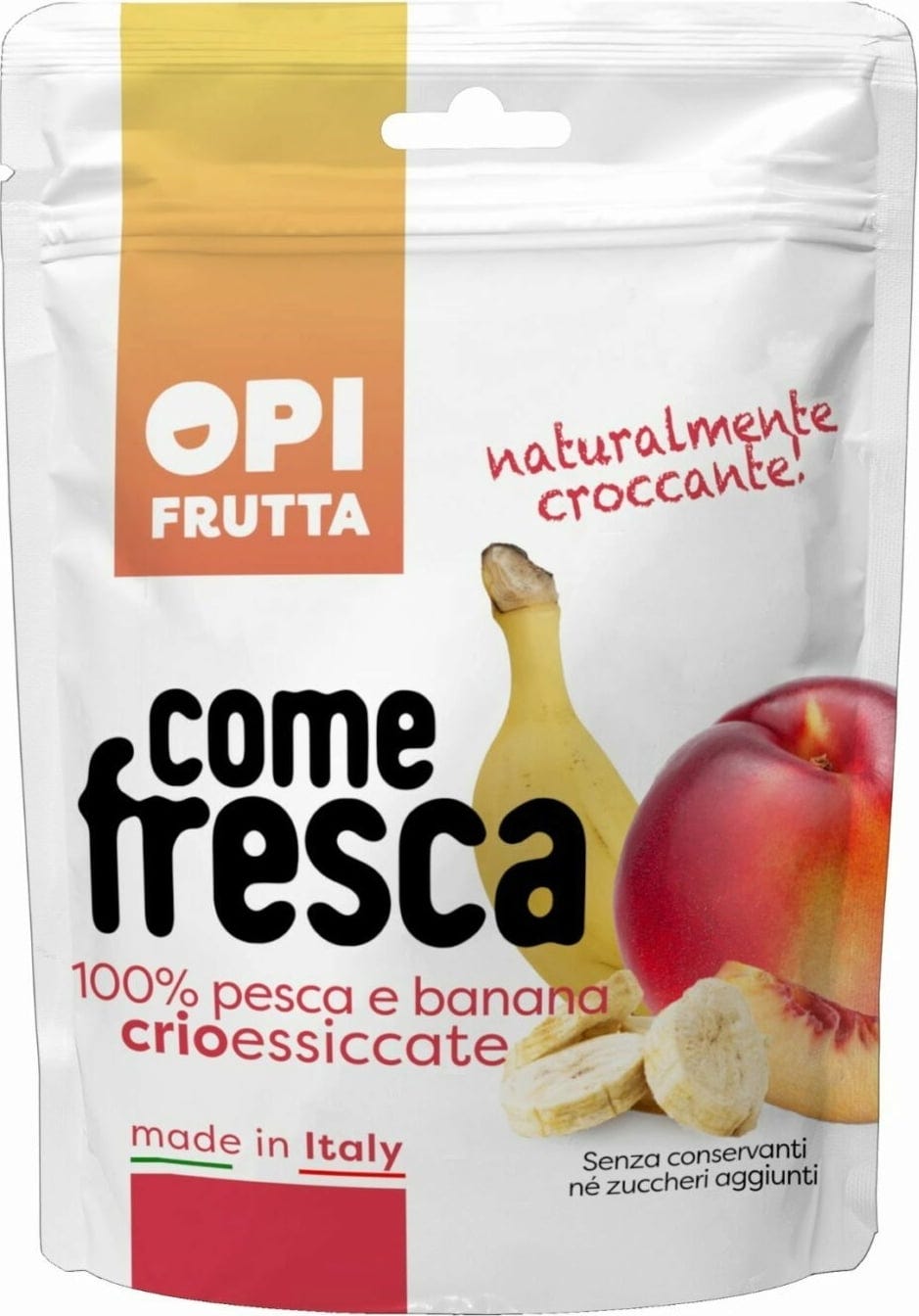 Il mix di pesca e banana è la combinazione perfetta per una carica di energia naturale. Grazie al delicato processo di liofilizzazione, il sapore e i nutrienti originali vengono preservati, dando vita a uno snack sorprendentemente croccante. Ogni morso è una piccola esplosione di gusto che ti metterà sicuramente di buon umore.