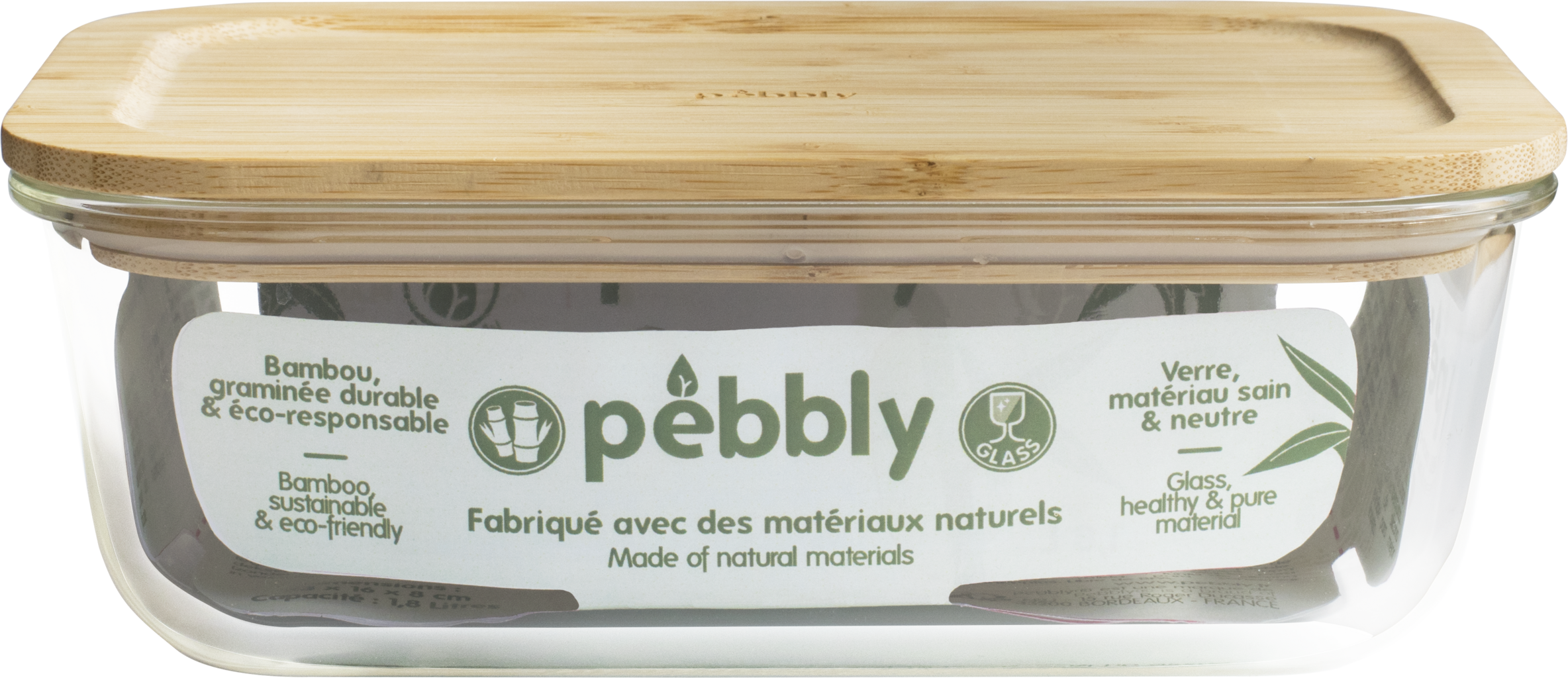 Pebbly Contenitore Rettangolare per Alimenti - Vetro/Bambù, 1800 ml