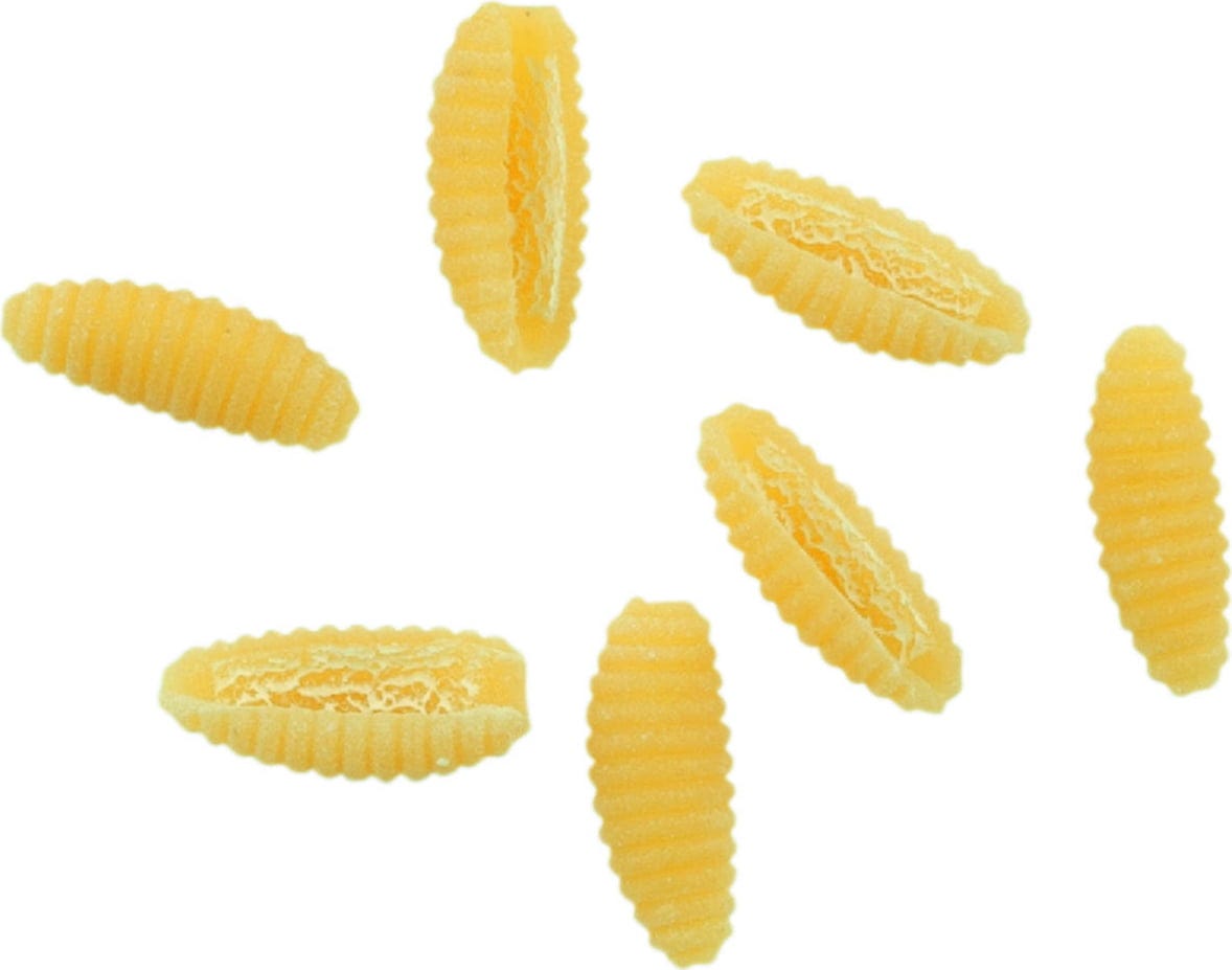 I Gnocchetti Sardi di Rummo si distinguono per la loro forma compatta e leggermente incurvata, ideale per trattenere il sugo in modo efficace. Grazie alla loro struttura, accolgono perfettamente condimenti a base di pomodoro o preparazioni con verdure a pezzetti.