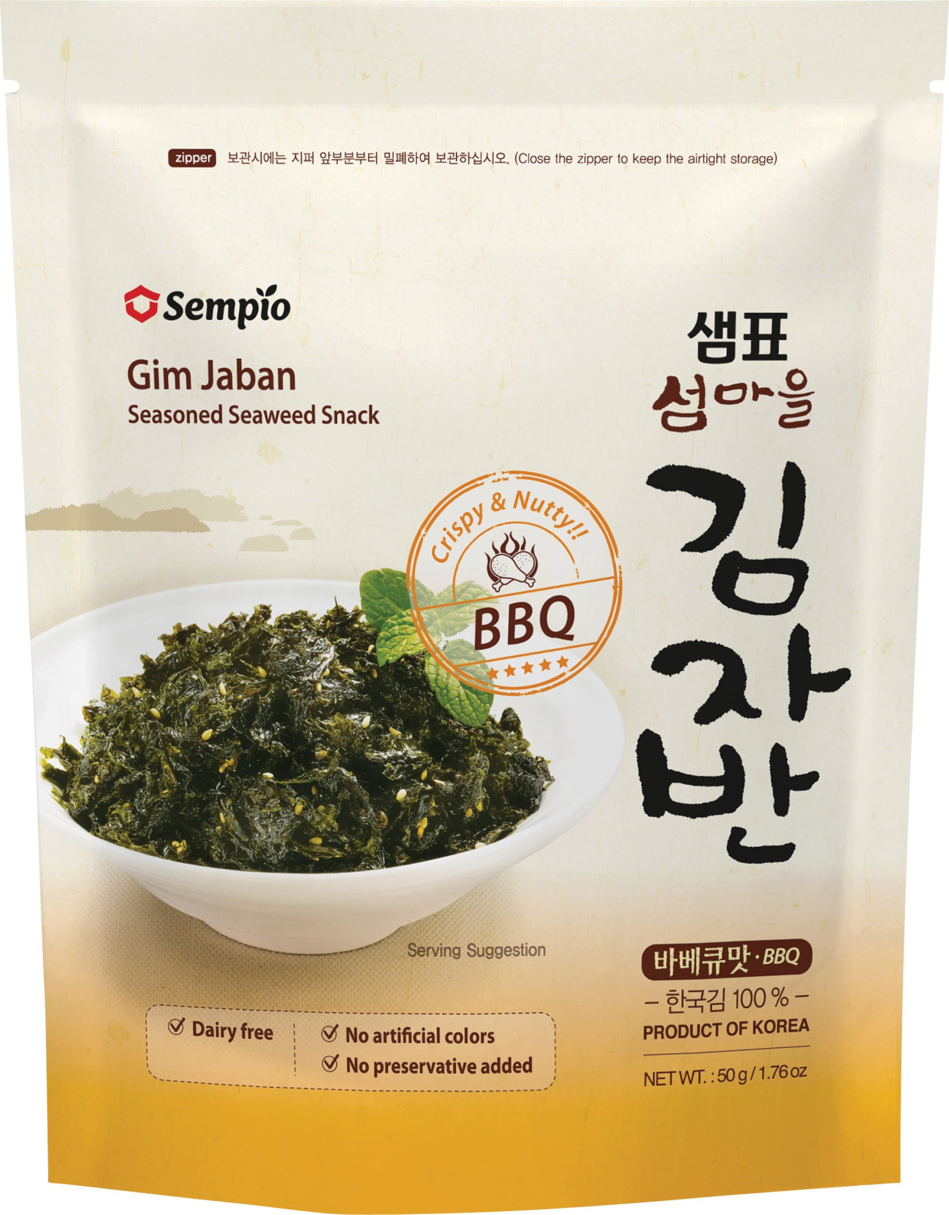 Per realizzare questo delizioso snack di alghe di Sempio, le alghe vengono delicatamente tostate fino a diventare irresistibilmente croccanti. Arricchite con semi di sesamo e un tocco di gusto barbecue, le sfoglie croccanti sono un accompagnamento ideale per piatti di pesce e riso, ma perfette anche come topping per insalate e bowl. Il loro sapore raffinato combina note speziate e marine, donando ai tuoi piatti un carattere unico e inconfondibile.