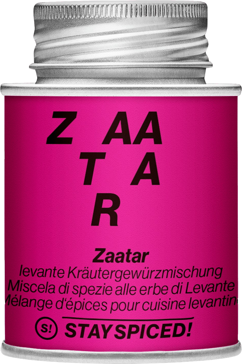 Stay Spiced! ha creato la propria miscela Zaatar, che contiene gli ingredienti tipici come sesamo, sommacco e sale a cui sono stati aggiunti il timo e l'origano che conferiscono alla miscela una nota aromatica fresca e erbacea.