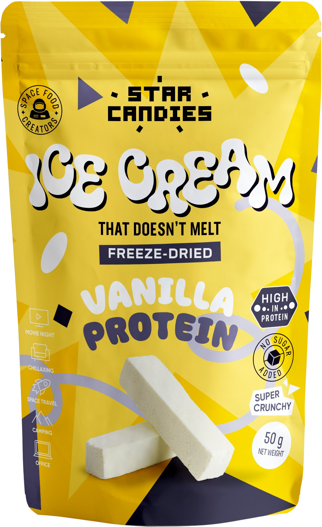 Scopri il gelato liofilizzato STAR CANDIES alla vaniglia con proteine di Super Garden. Un dessert straordinario, dal gusto delicato e dalla consistenza croccante e leggera, che non si scioglie: tutto il piacere del gelato, senza bisogno di freezer.