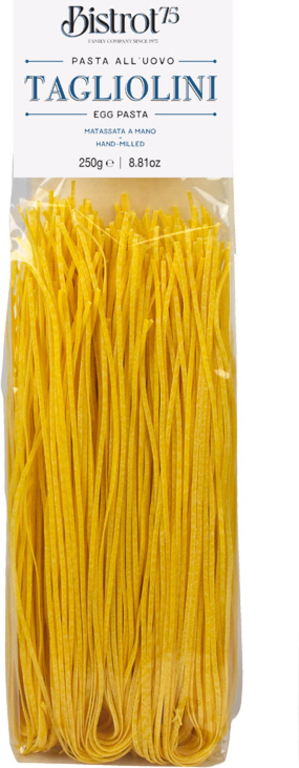 Questi tagliolini all'uovo sono prodotti artigianalmente da TartufLanghe. La pasta è trafilata al bronzo e tagliata al coltello, ottenendo una consistenza eccezionalmente elastica e un'eccellente tenuta in cottura.