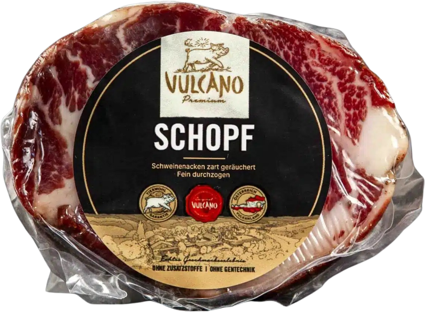Ogni pezzo è unico! Solo la migliore carne suina, lavorata attentamente e con maestria, diventa il capocollo di Vulcano. La stagionatura perfetta, la delicata affumicatura e la bilanciata miscela di spezie conferiscono a questo prodotto un sapore incredibile a cui difficilmente saprai resistere.