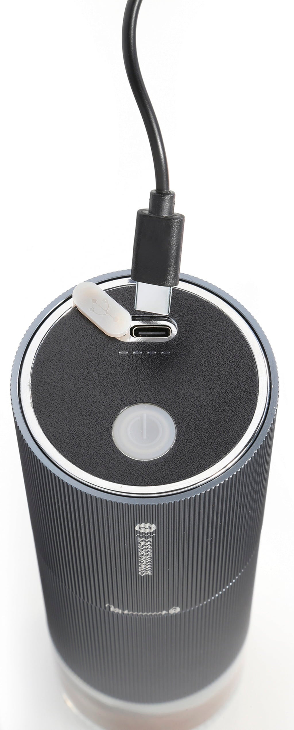 Con il macinacaffè MASTER USB, puoi gustare un caffè appena macinato, a casa, in ufficio o in viaggio. Basta premere un pulsante: il robusto meccanismo di macinatura in acciaio inox funziona in modo uniforme, preservando l'aroma dei chicchi. Regolare la macinatura è semplicissimo, da fine per l'espresso a fine per il caffè filtrato. Il caffè macinato cade direttamente nel contenitore in vetro ed è subito pronto per l'infusione. Moderno, compatto e perfetto per chi ama il buon caffè.