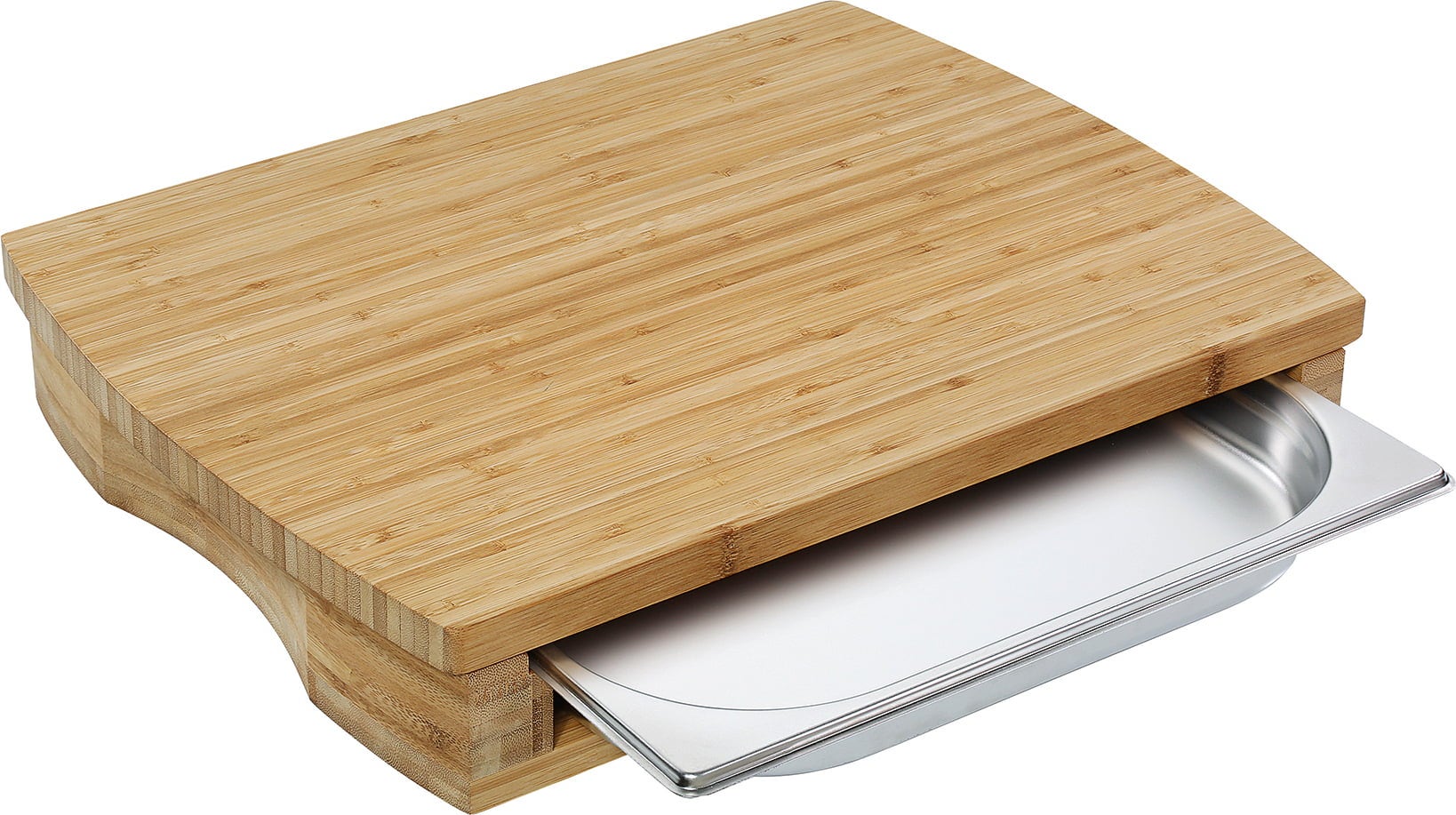 Con il tagliere STATION ONE di Zassenhaus, affettare e tagliare diventa un gioco da ragazzi. Grazie alla sua pratica vaschetta raccoglitore e alle impugnature integrate, cipolle, semi e altri ingredienti rimangono ordinatamente separati. Può essere utilizzato anche da solo come un classico tagliere in bambù, offrendo flessibilità e organizzazione per ogni compito in cucina. I piedini antiscivolo garantiscono stabilità, rendendo la cucina un vero piacere!