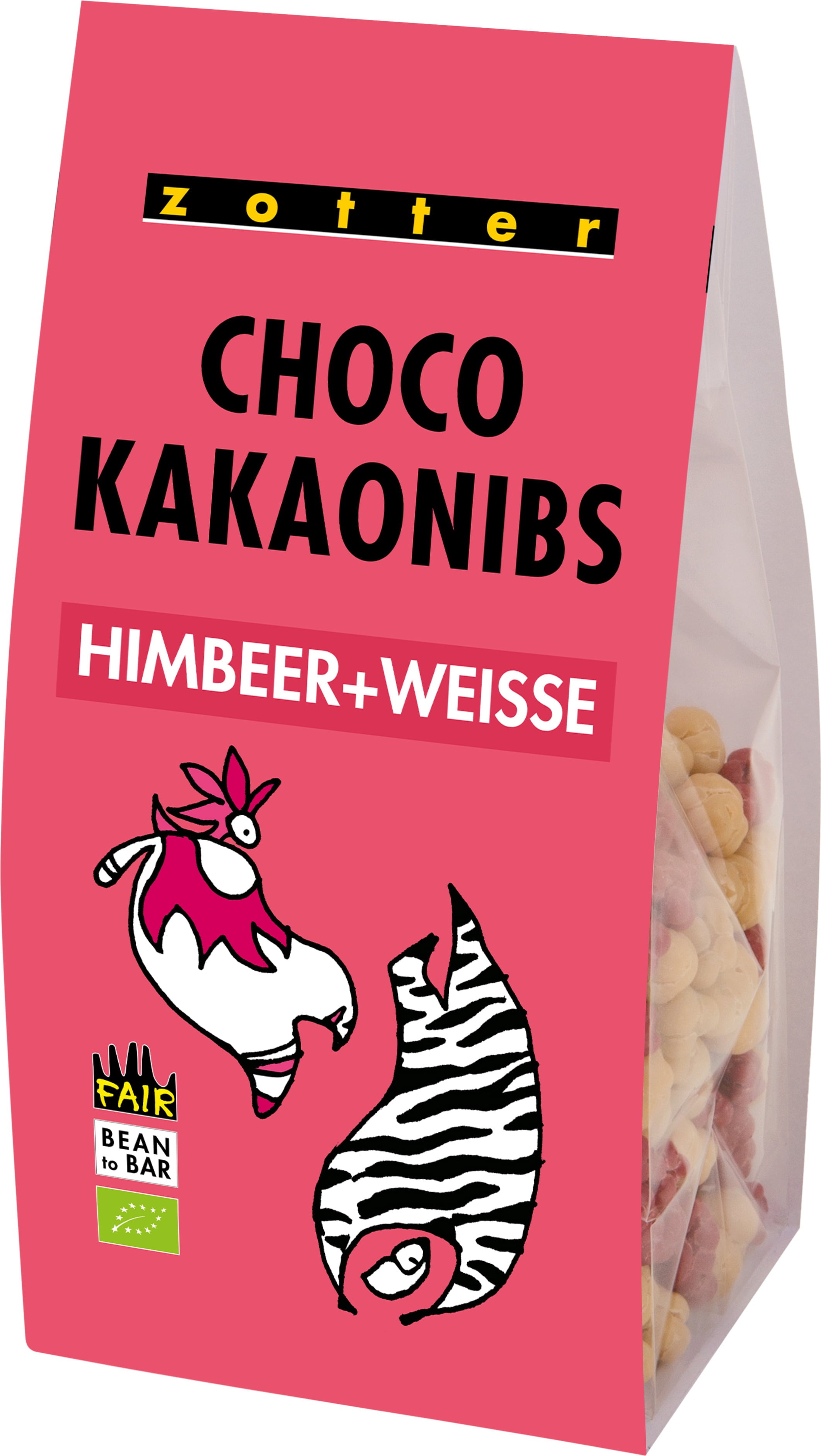 Croccanti pezzi di fave di cacao tostate con due diverse coperture: cioccolato bianco e couverture ai lamponi. Una squisita combinazione che si può usare sia come topping per dessert, muesli o yogurt, sia semplicemente da rosicchiare come snack.